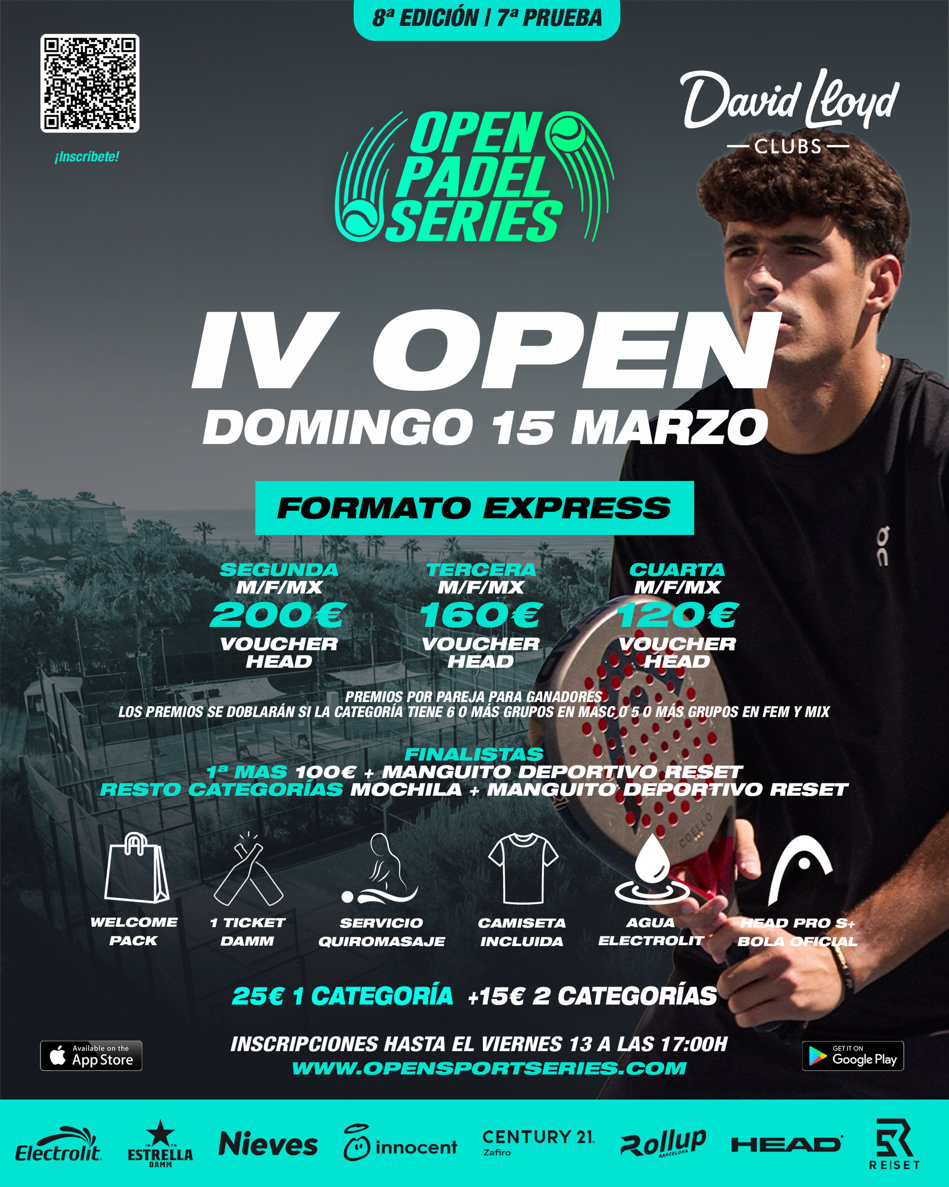 ¡El Domingo 15 de Marzo nos vemos en el IV Open EXPRESS en David Lloyd Gavà! 8 Categorías de juego: 2-3-4 Masculina / 2-3-4 Femenina / 2-3 Mixta...