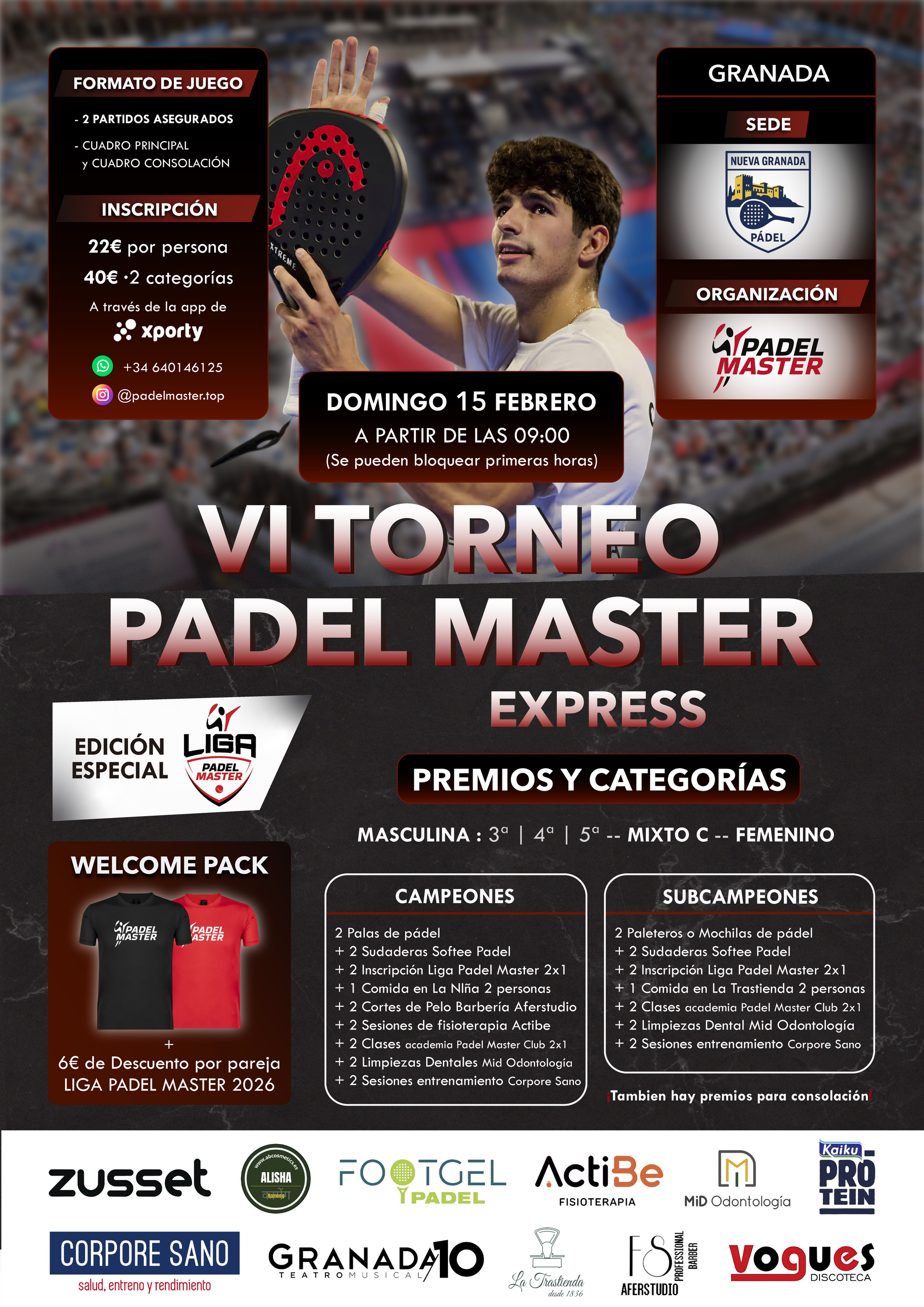 ● VI TORNEO PADEL MASTER Express Especial LIGA PADEL MASTER 2026 ● INSTALACIONES: - Nueva Granada Padel (Club indoor en Albolote) ¡Comida y...