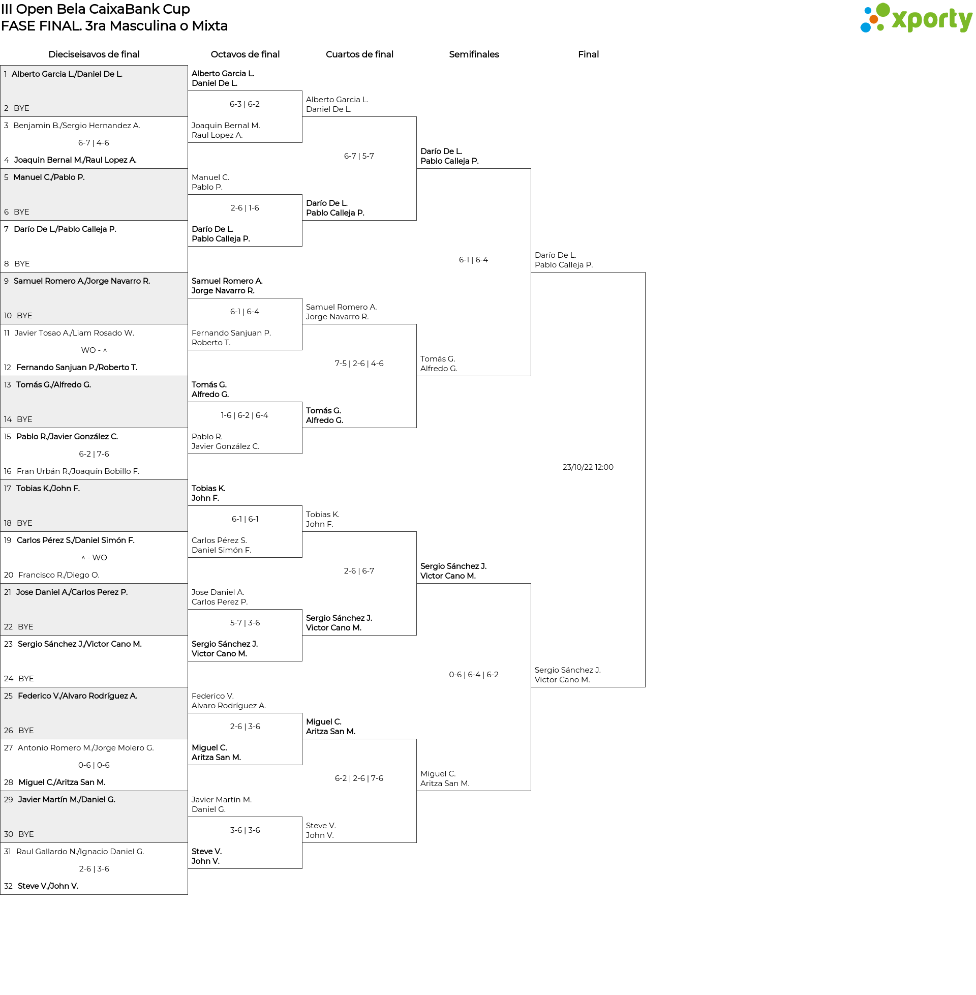 Cuadro principal 3ra Masculina o Mixta