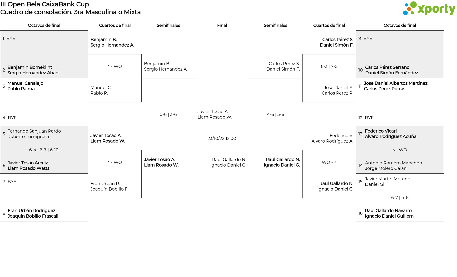 Cuadro de consolación 3ra Masculina o Mixta