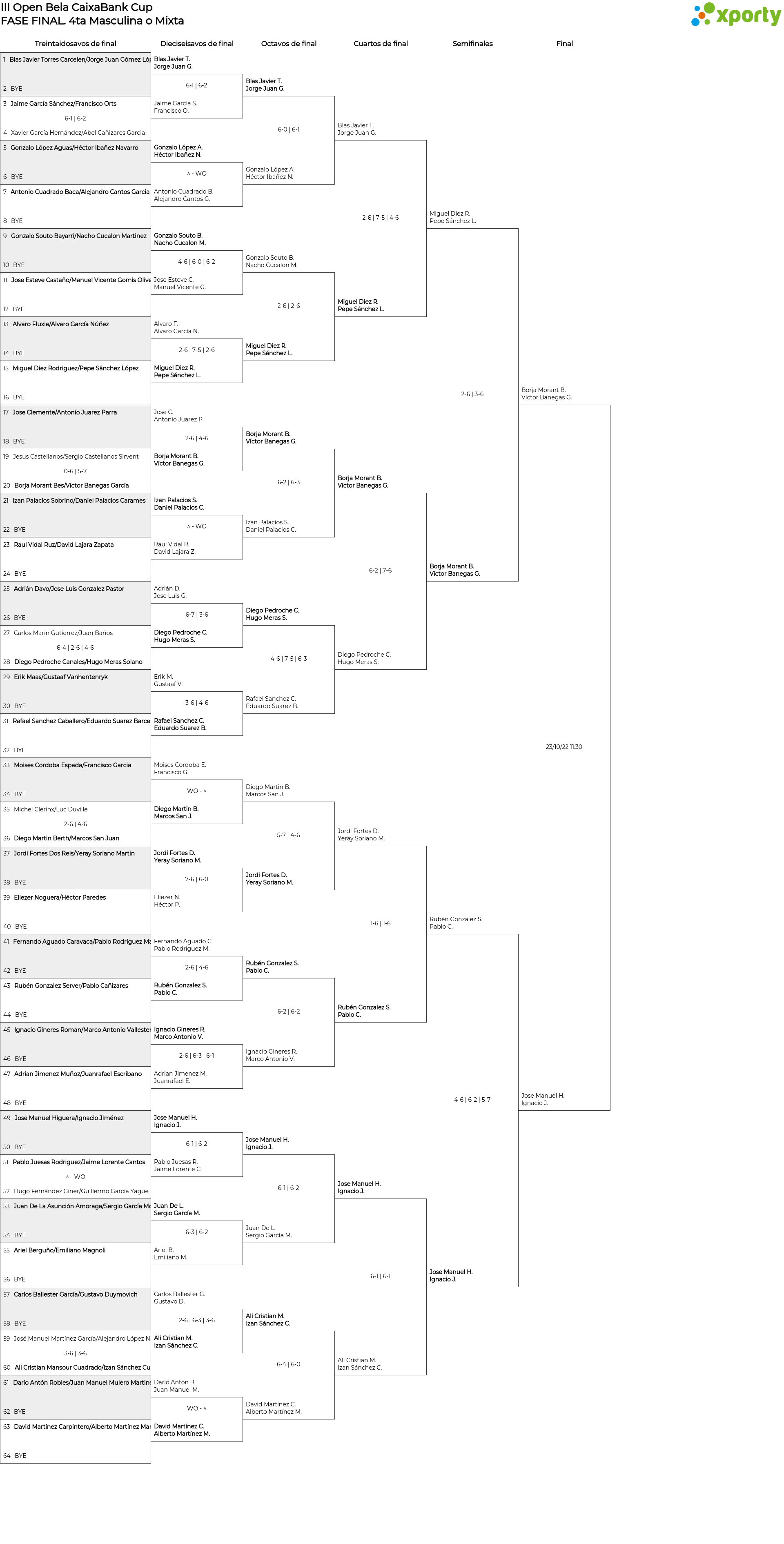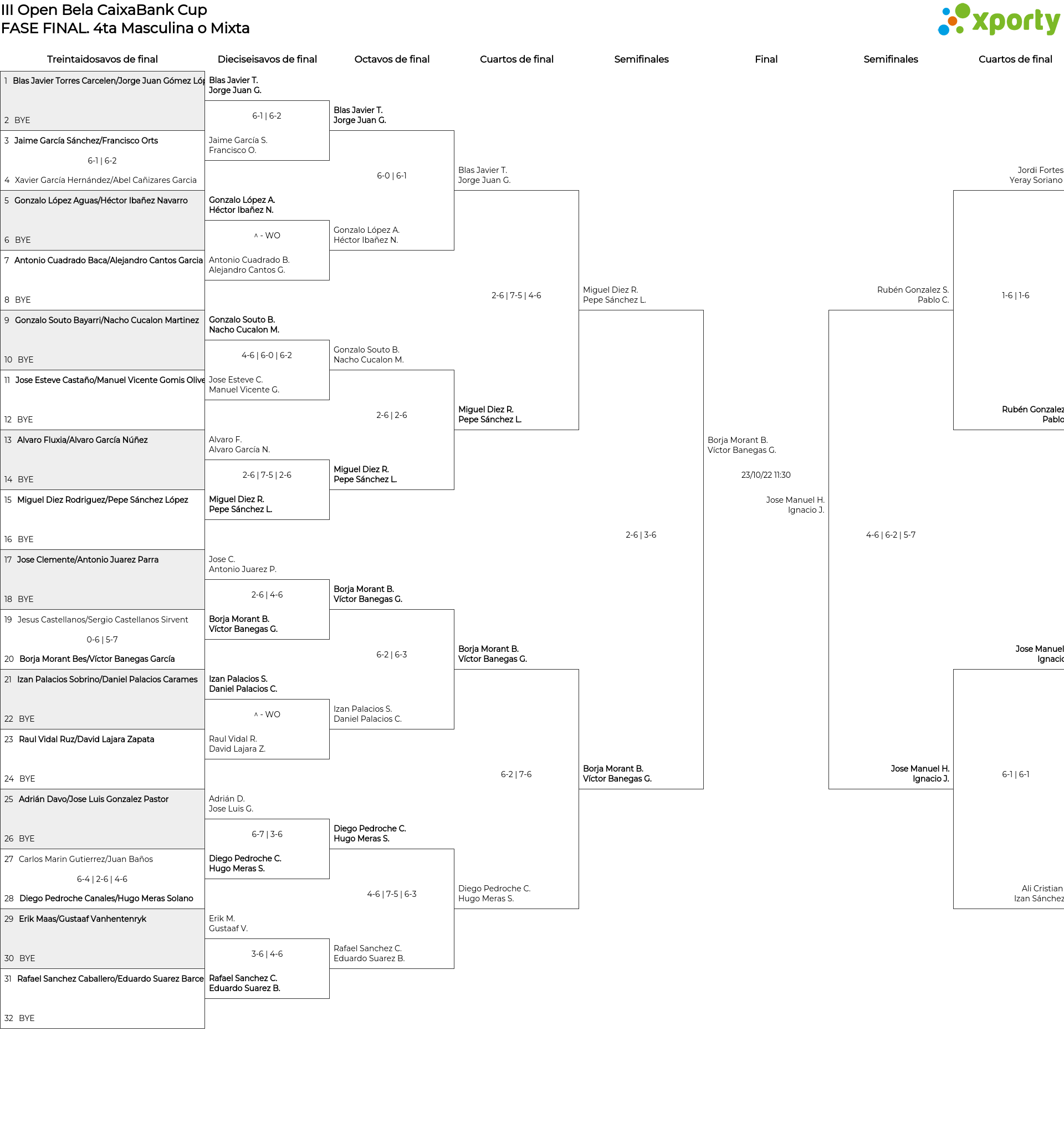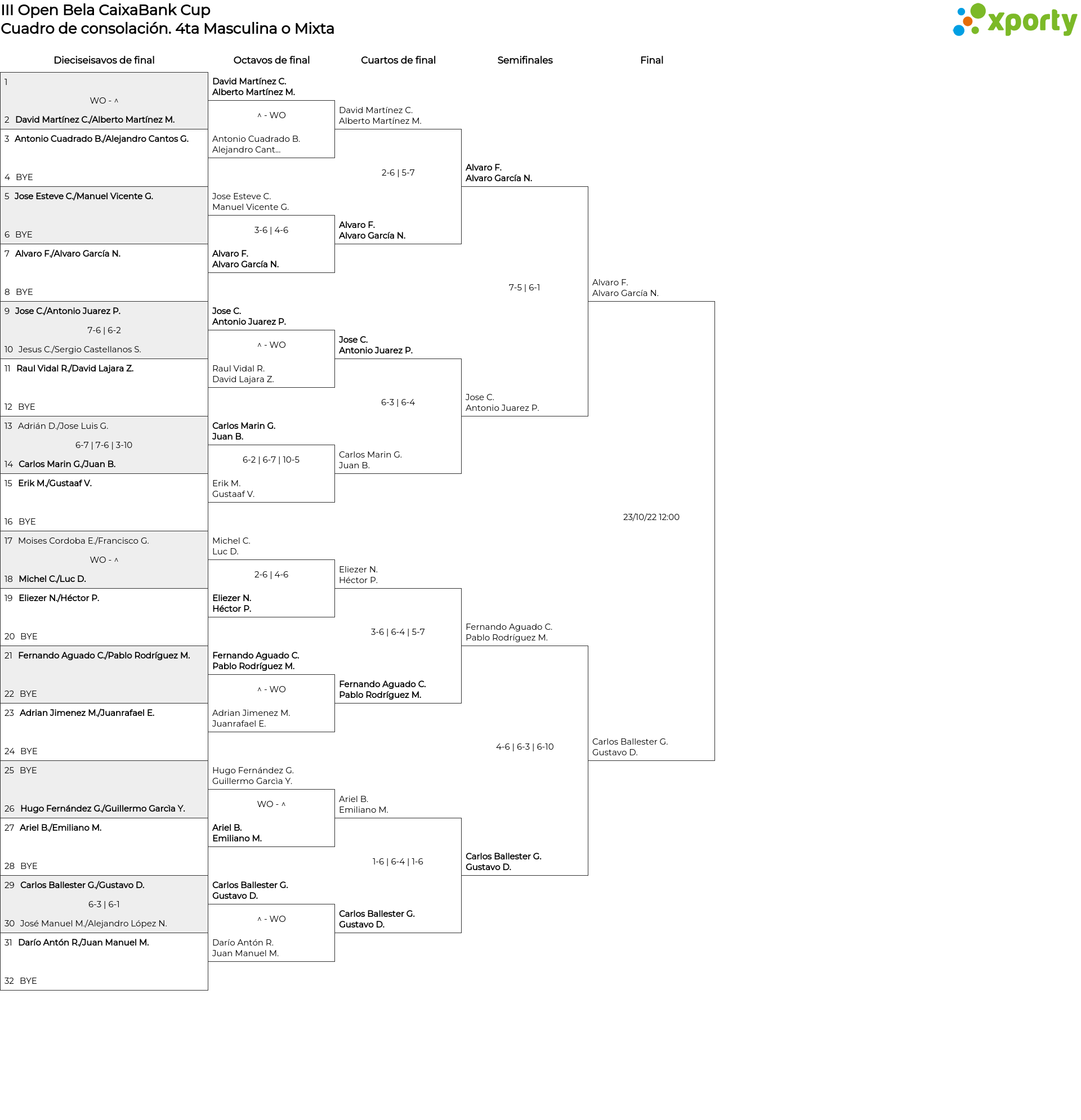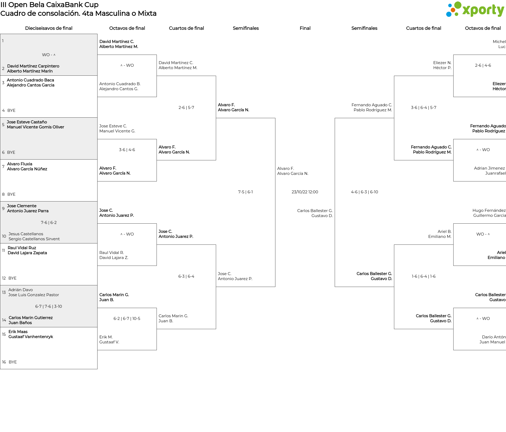 Cuadro de consolación 4ta Masculina o Mixta