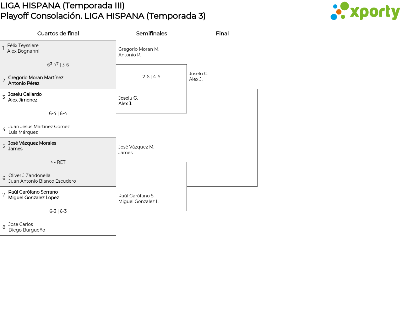 Cuadro principal LIGA HISPANA (Temporada 3)