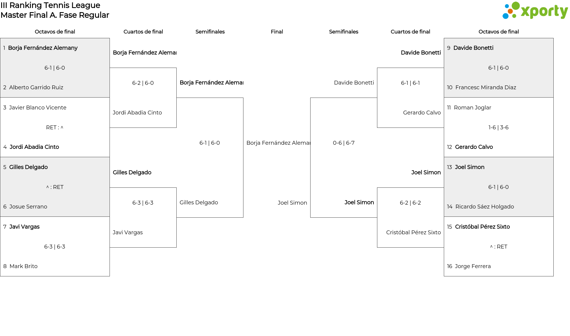 Cuadro principal Fase Regular