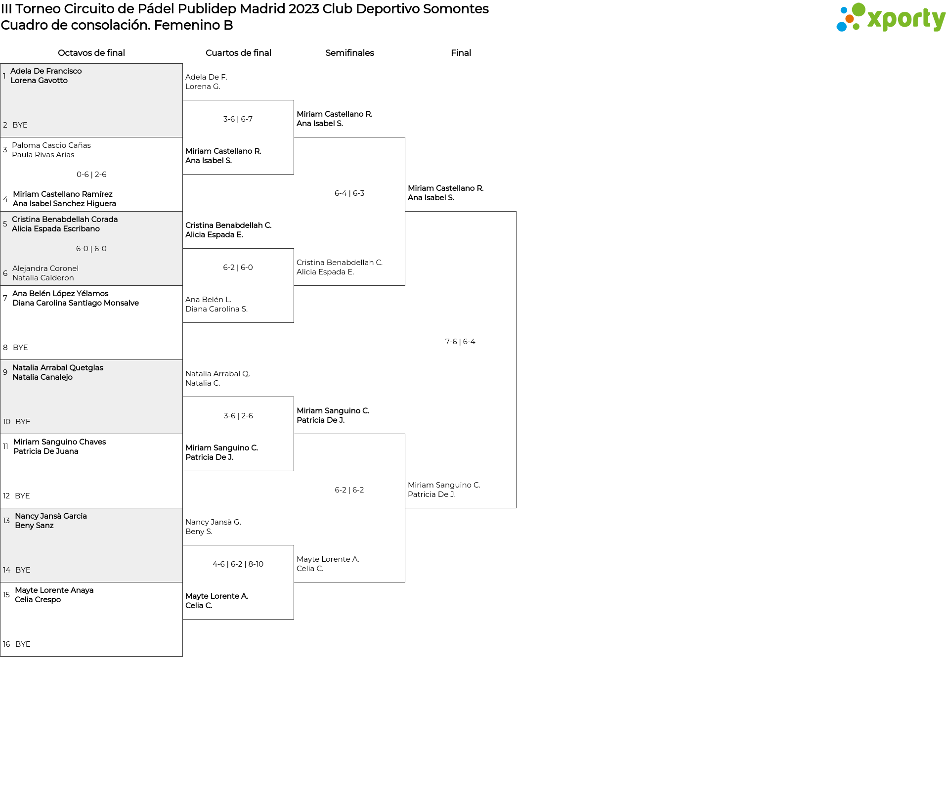 Cuadro principal Femenino B