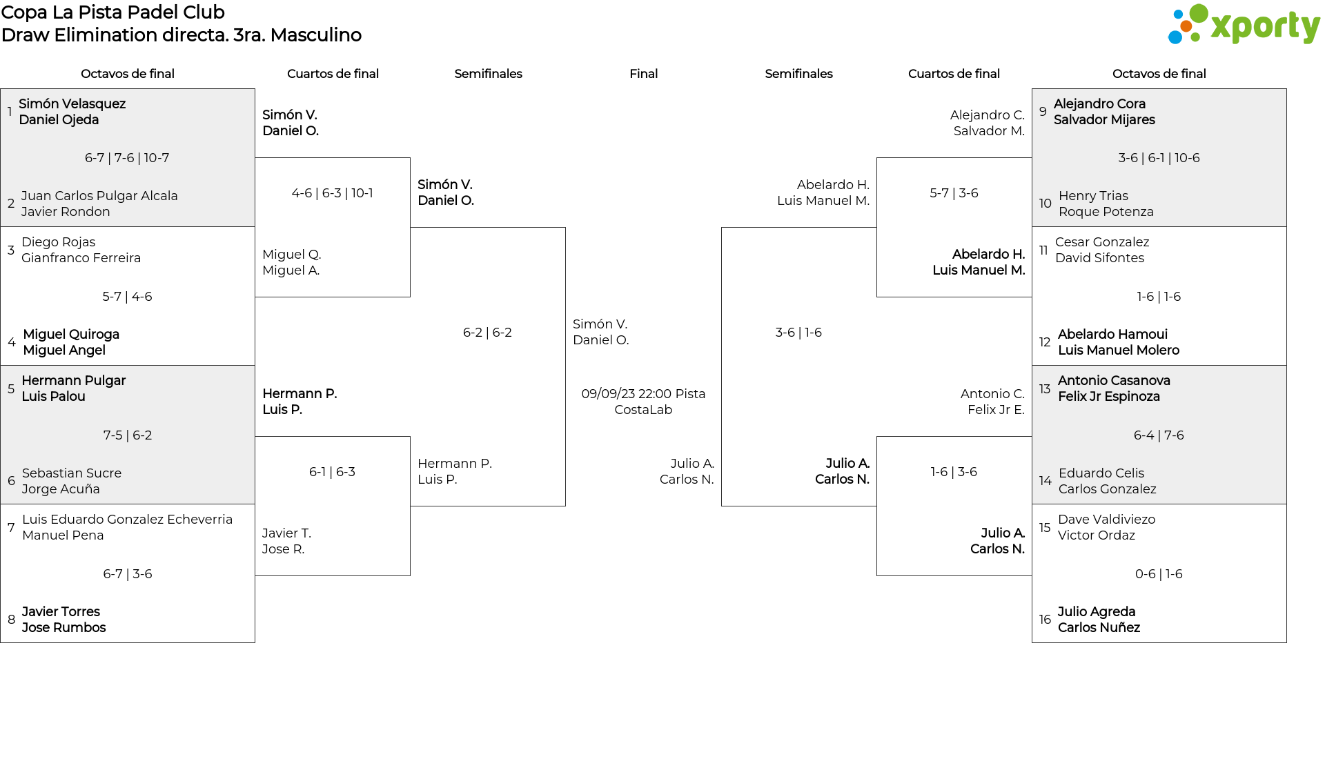Draw Elimination Directa3ra. Masculino