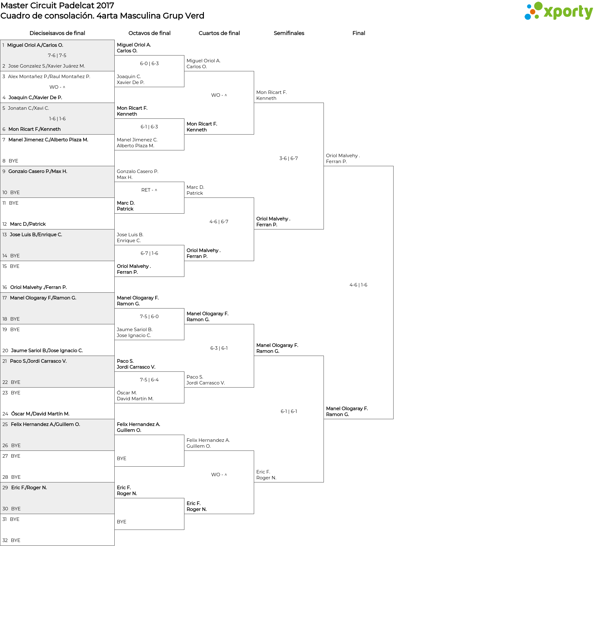 Cuadro de consolación 4arta Masculina Grup Verd