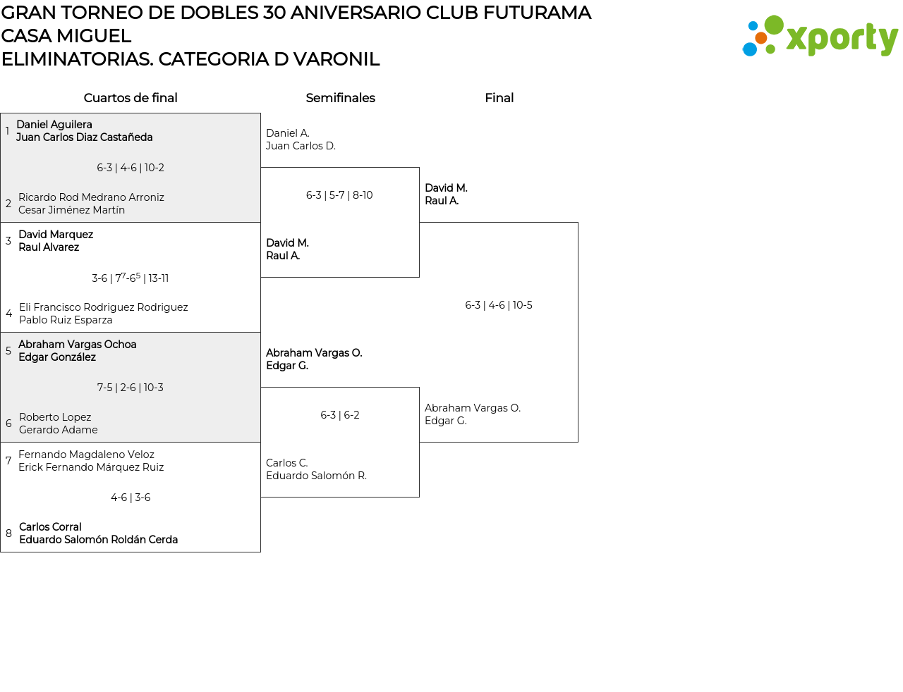 GRAN TORNEO DE DOBLES 30 ANIVERSARIO CLUB FUTURAMA CASA MIGUEL