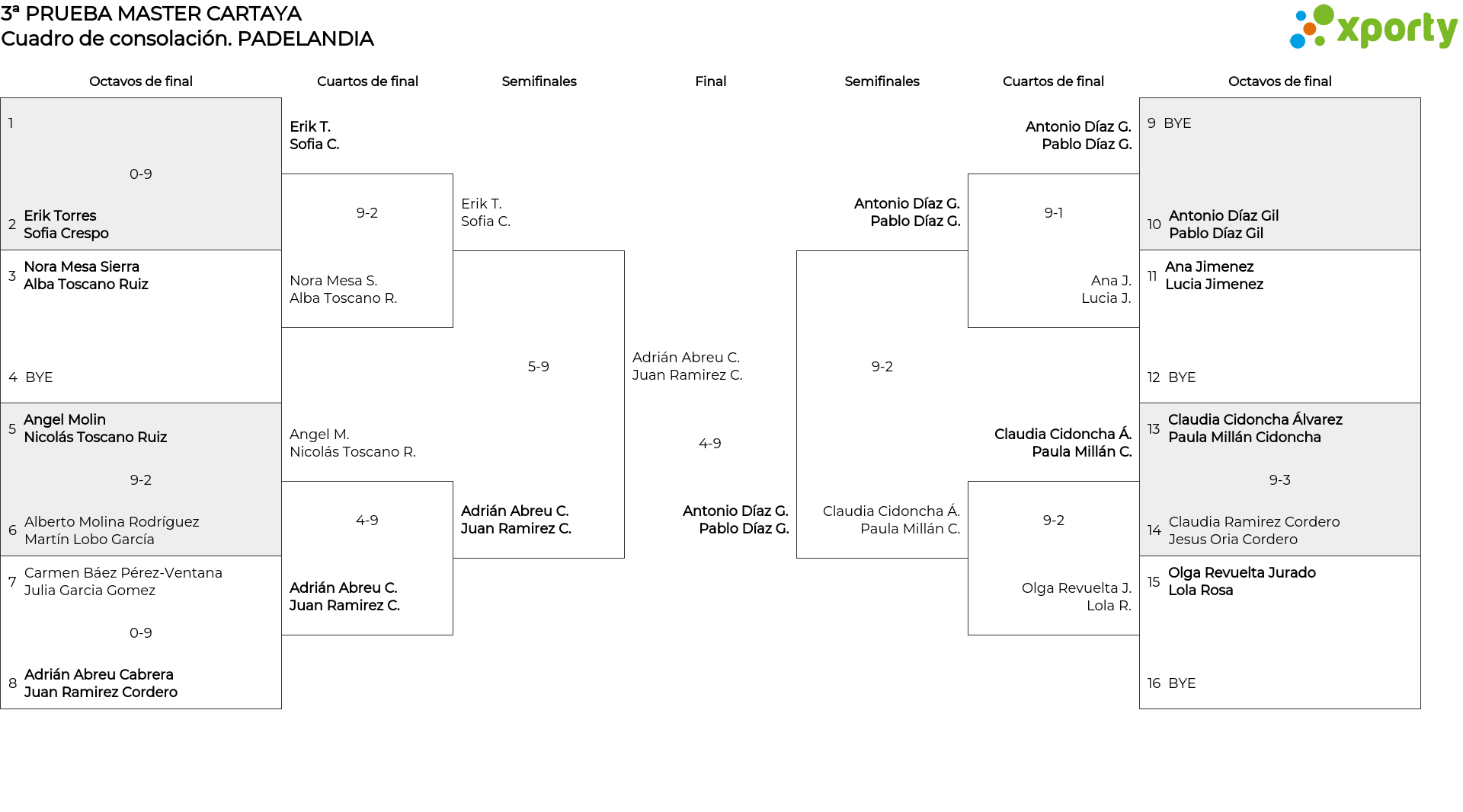 Cuadro de consolación PADELANDIA