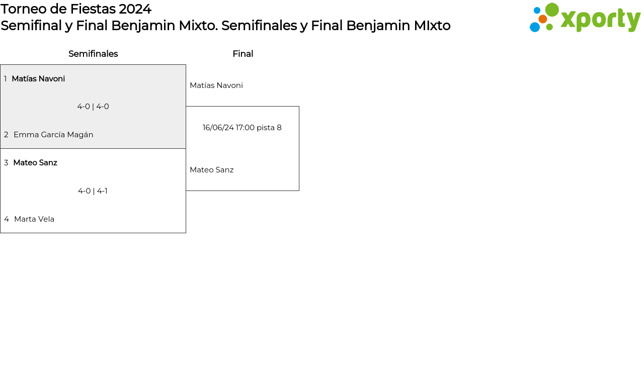Cuadro principal Semifinales y Final Benjamin MIxto