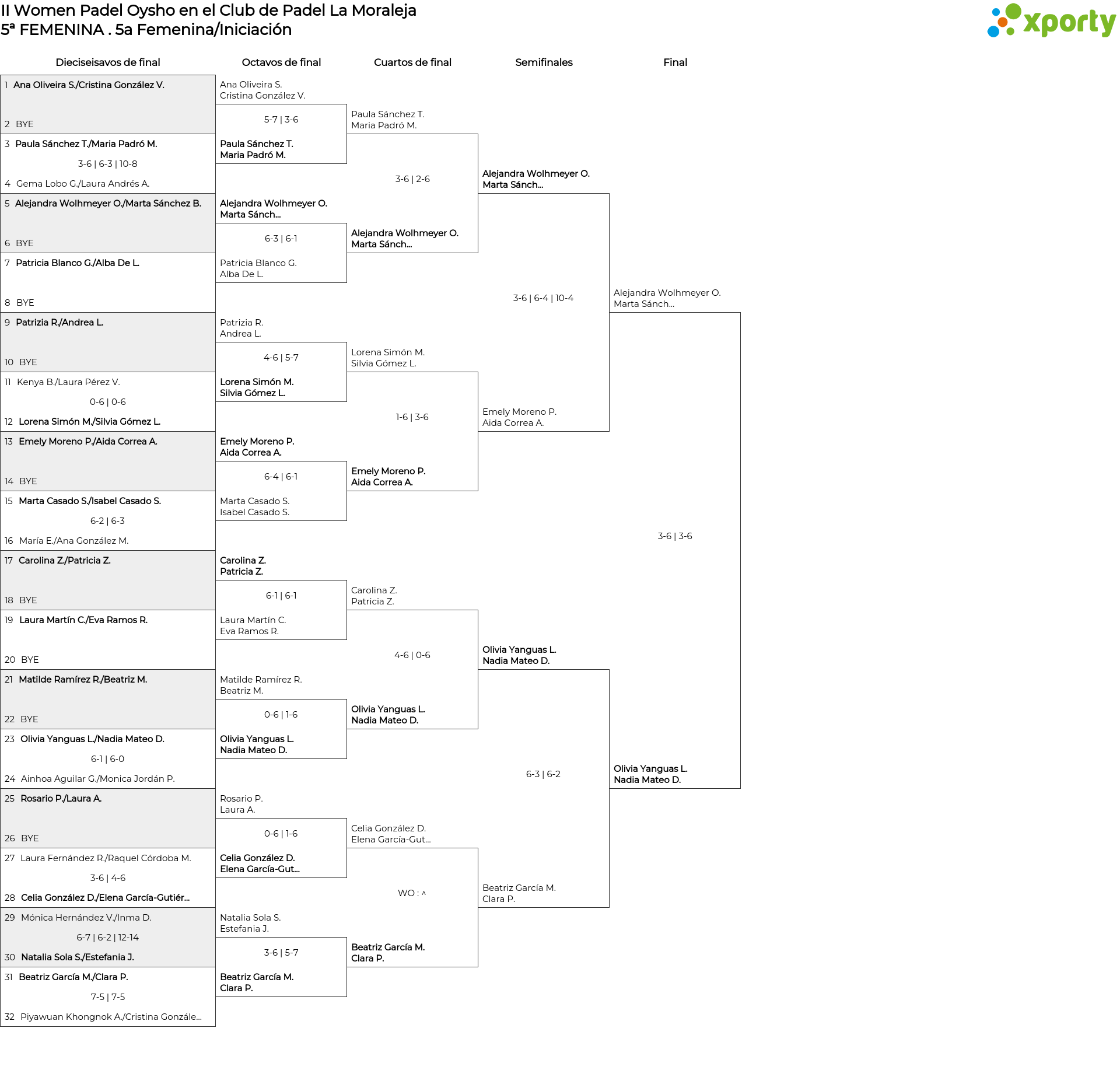 Cuadro principal 5a Femenina/Iniciación