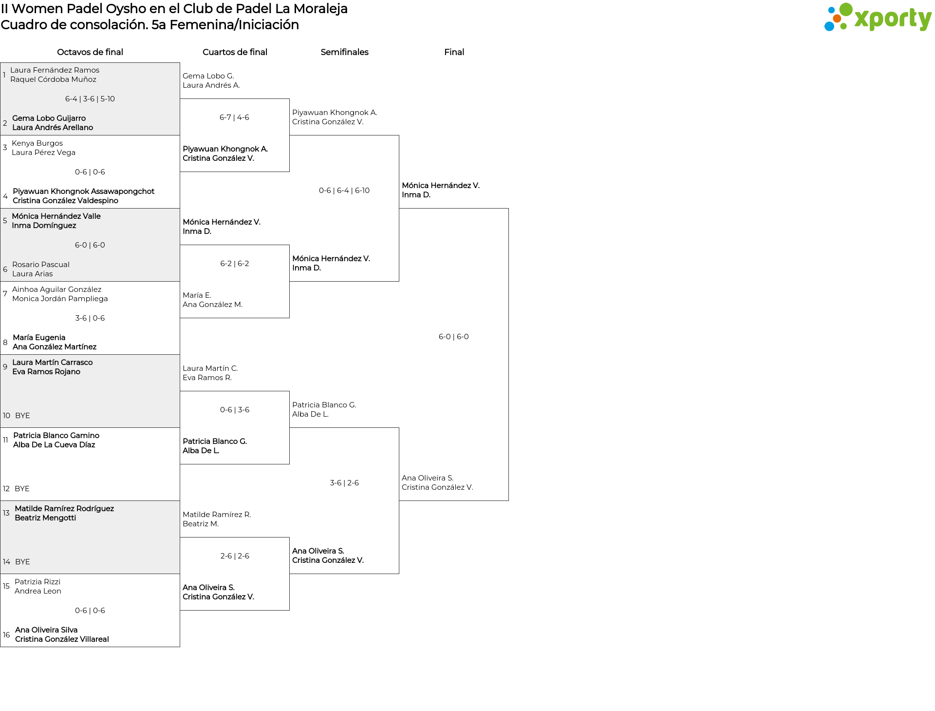 Cuadro de consolación 5a Femenina/Iniciación