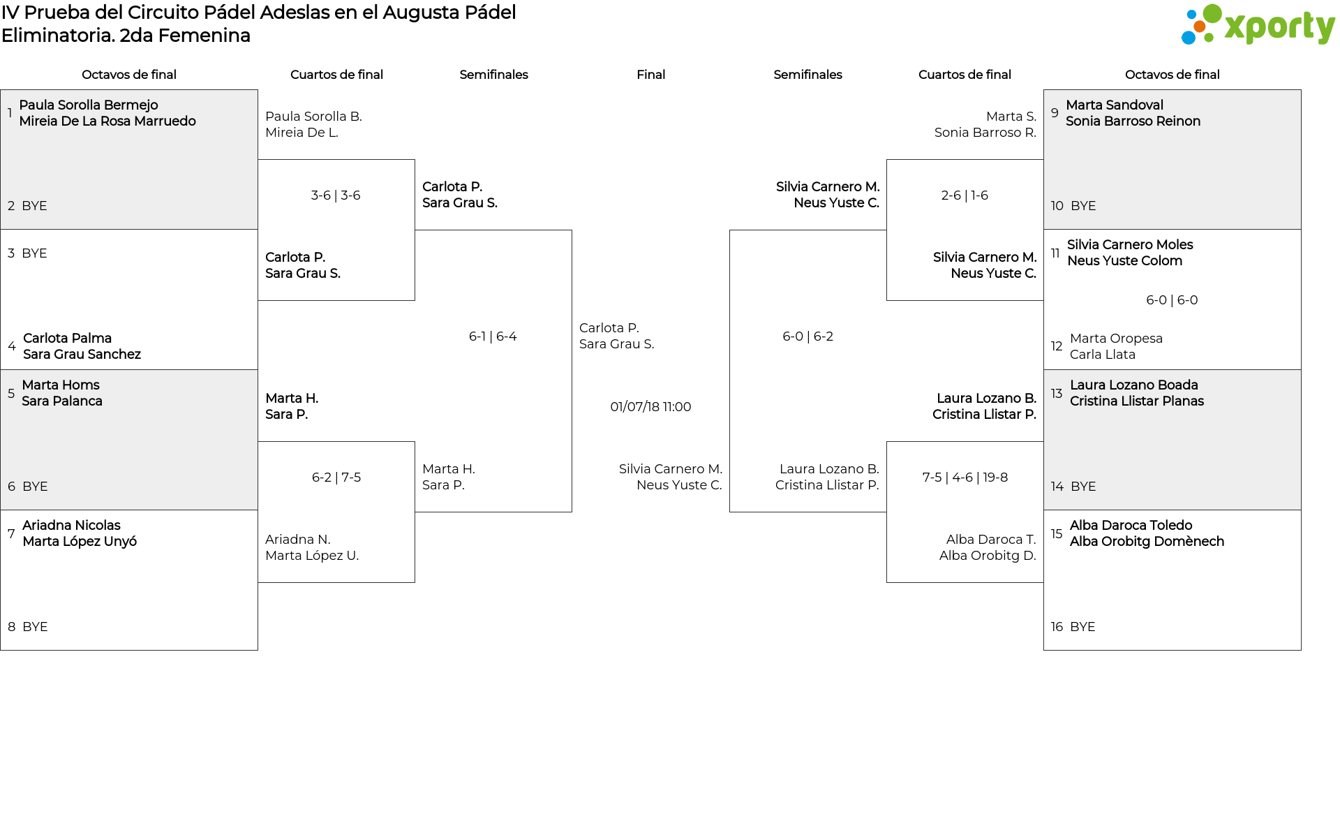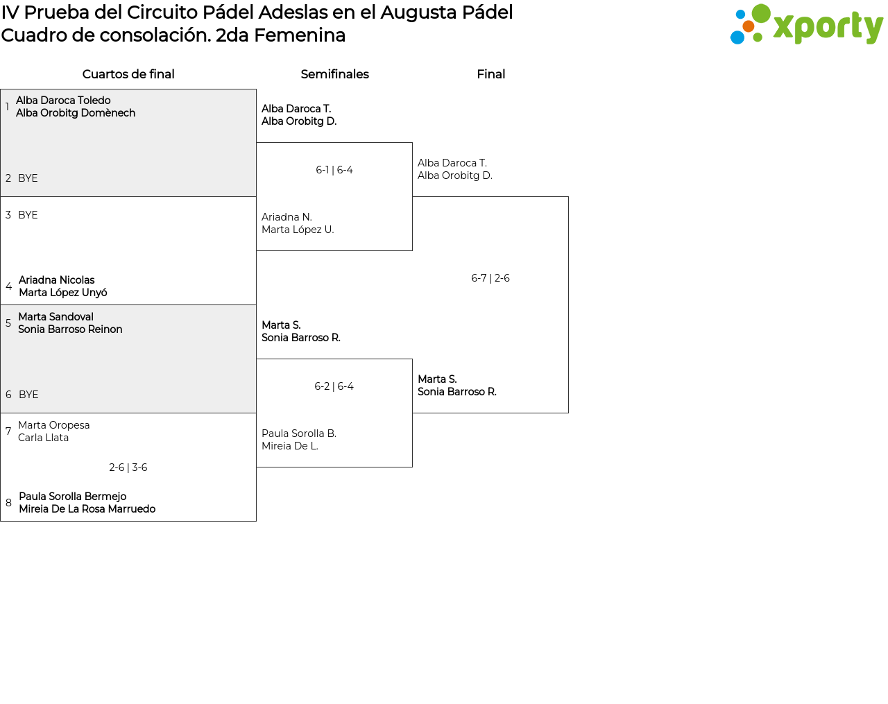 Cuadro de consolación 2da Femenina