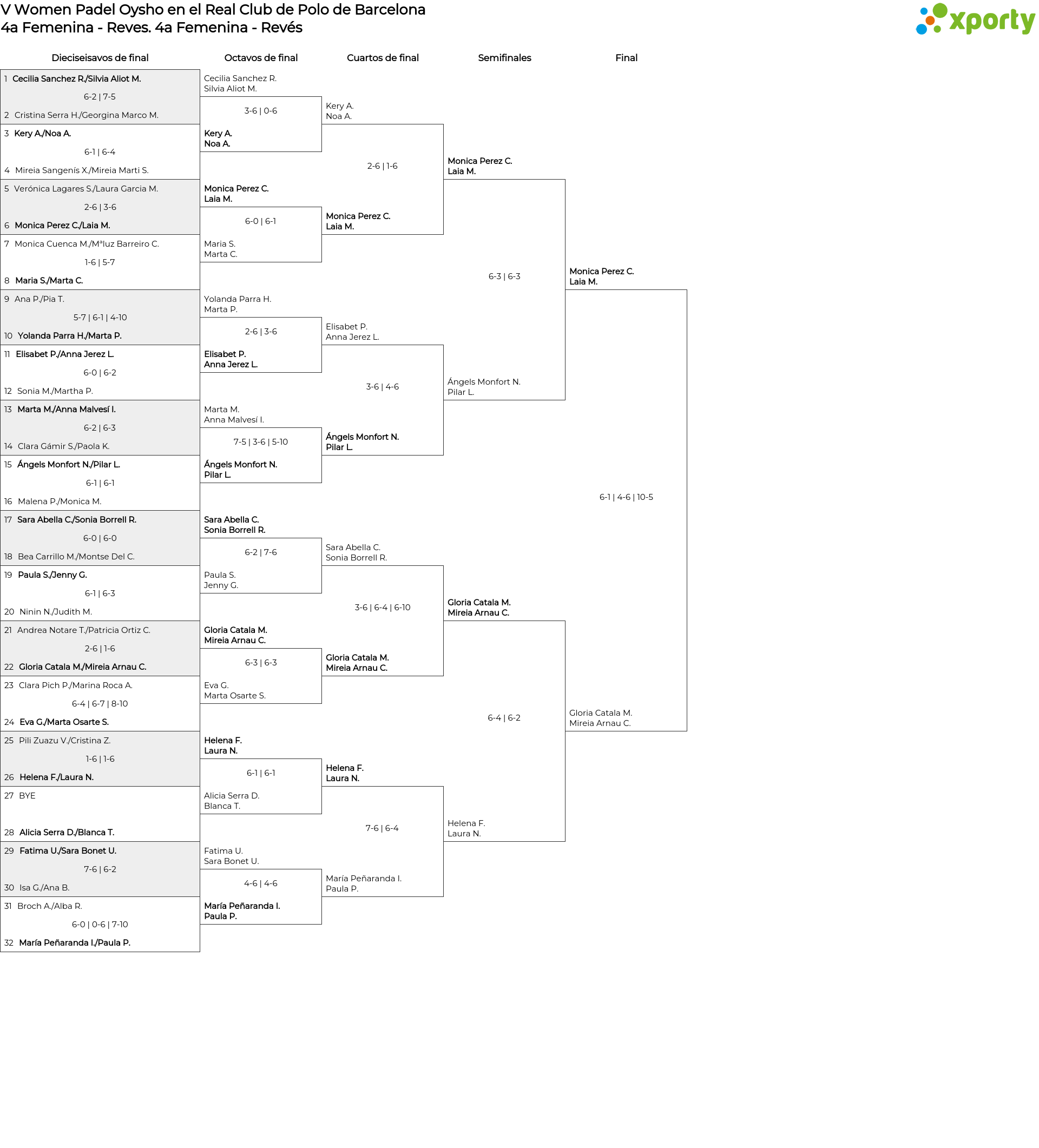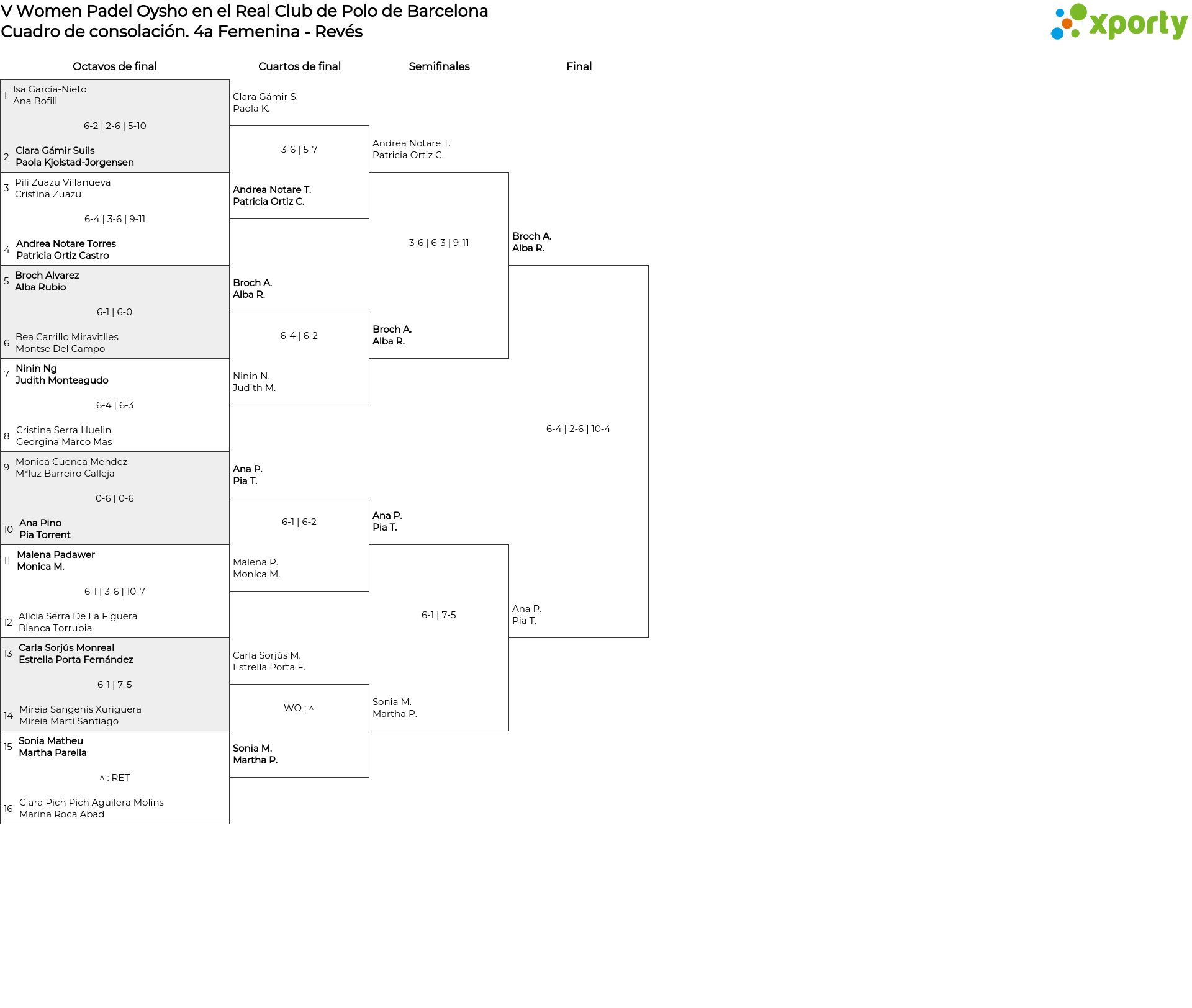 Cuadro de consolación 4a Femenina - Revés