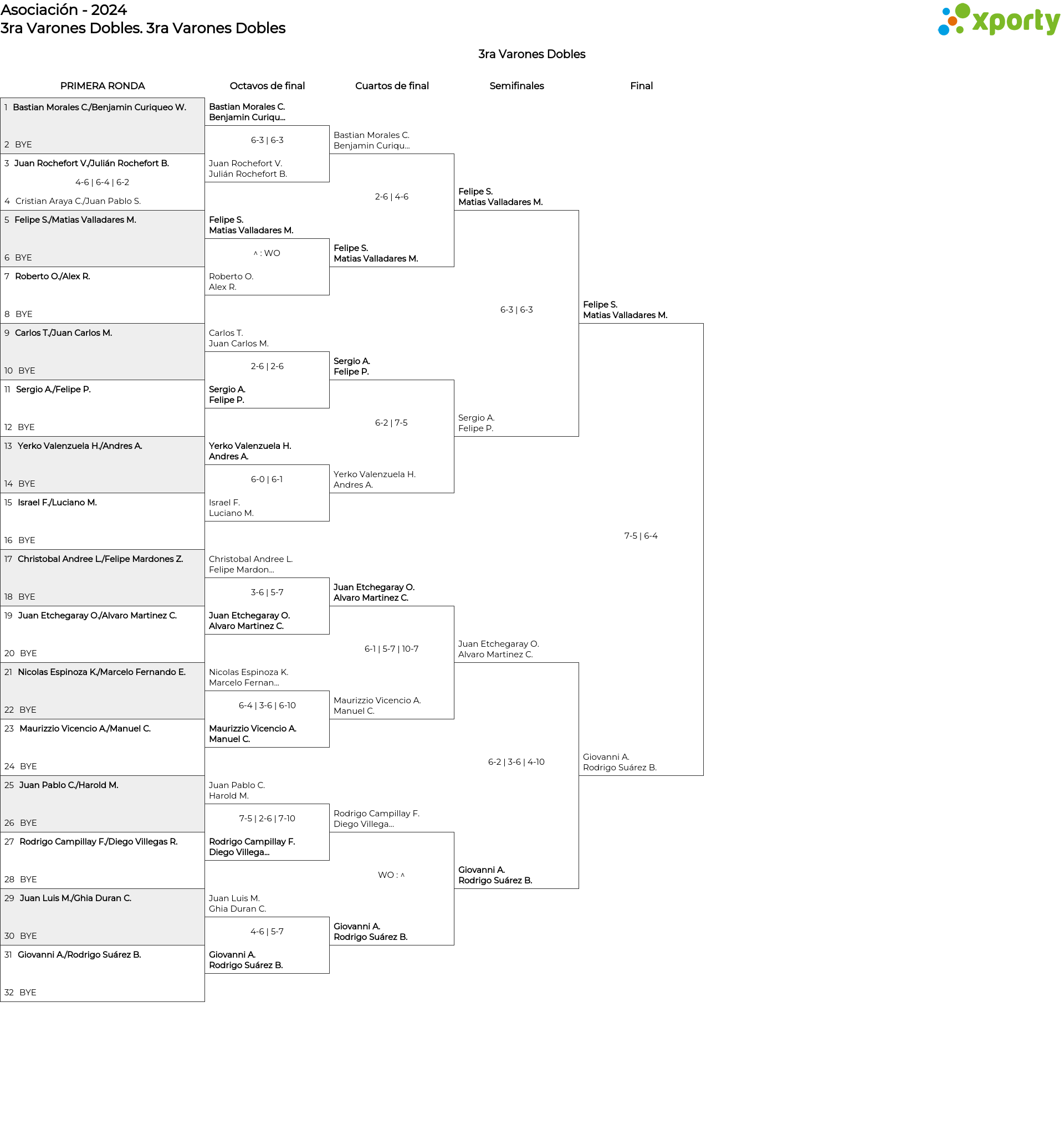 Cuadro principal 3ra Varones Dobles
