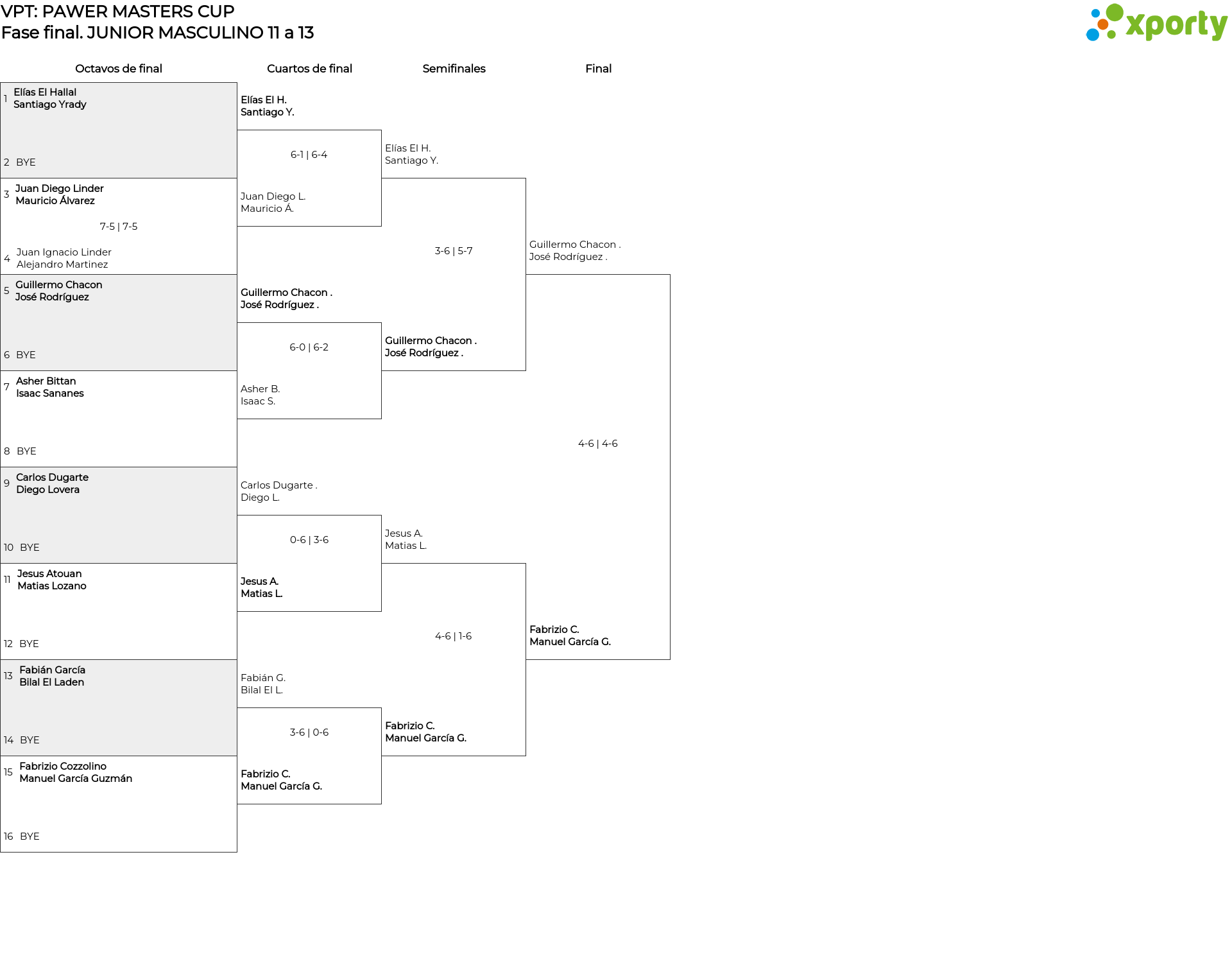 Cuadro principal - Fase final - JUNIOR MASCULINO 11 a 13