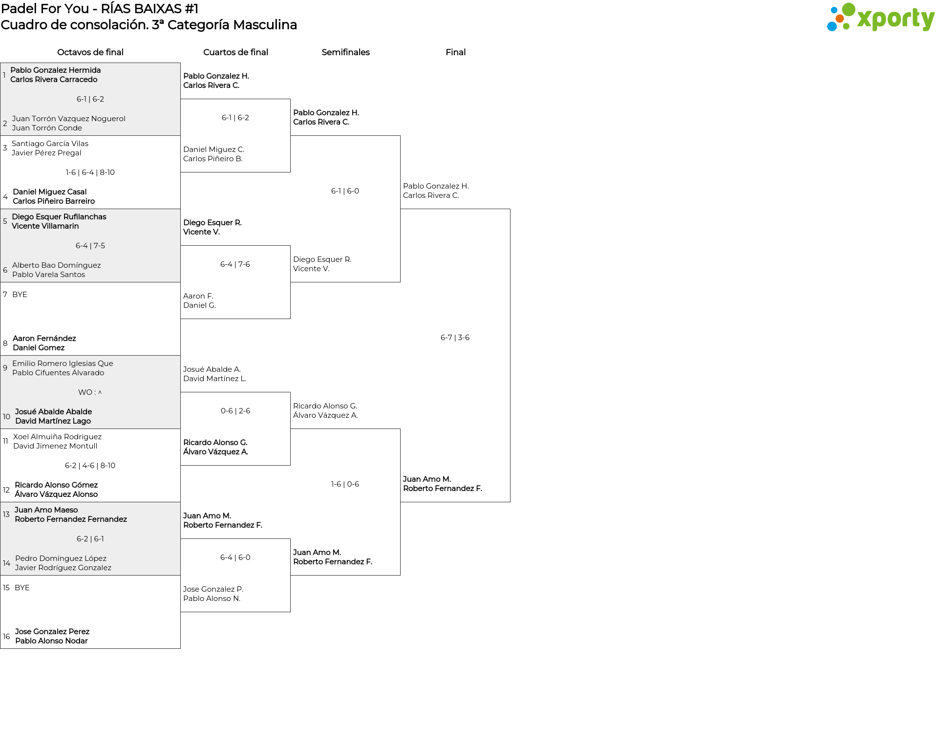 Cuadro de consolación 3ª Categoría Masculina