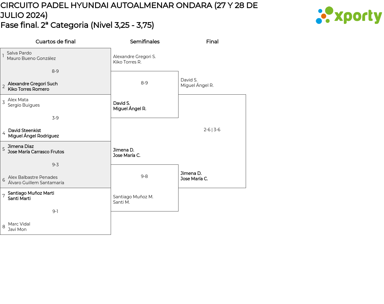 Cuadro principal 2ª Categoria (Nivel 3,25 - 3,75)