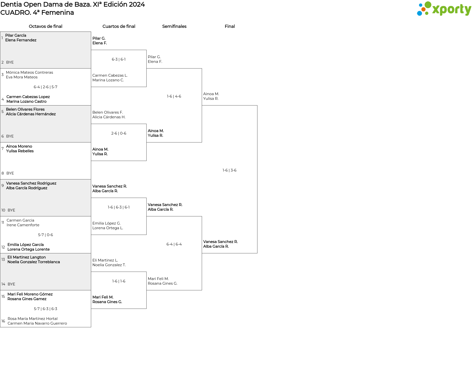 Cuadro de consolación 4ª Femenina