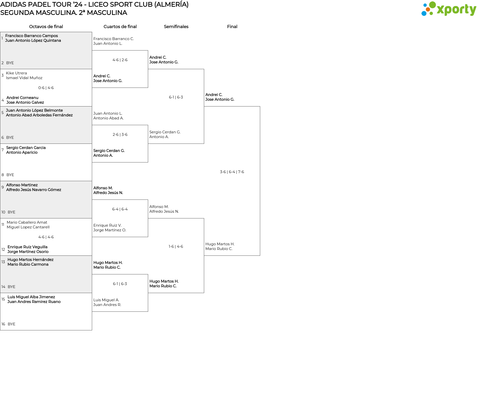 Cuadro principal 2ª MASCULINA