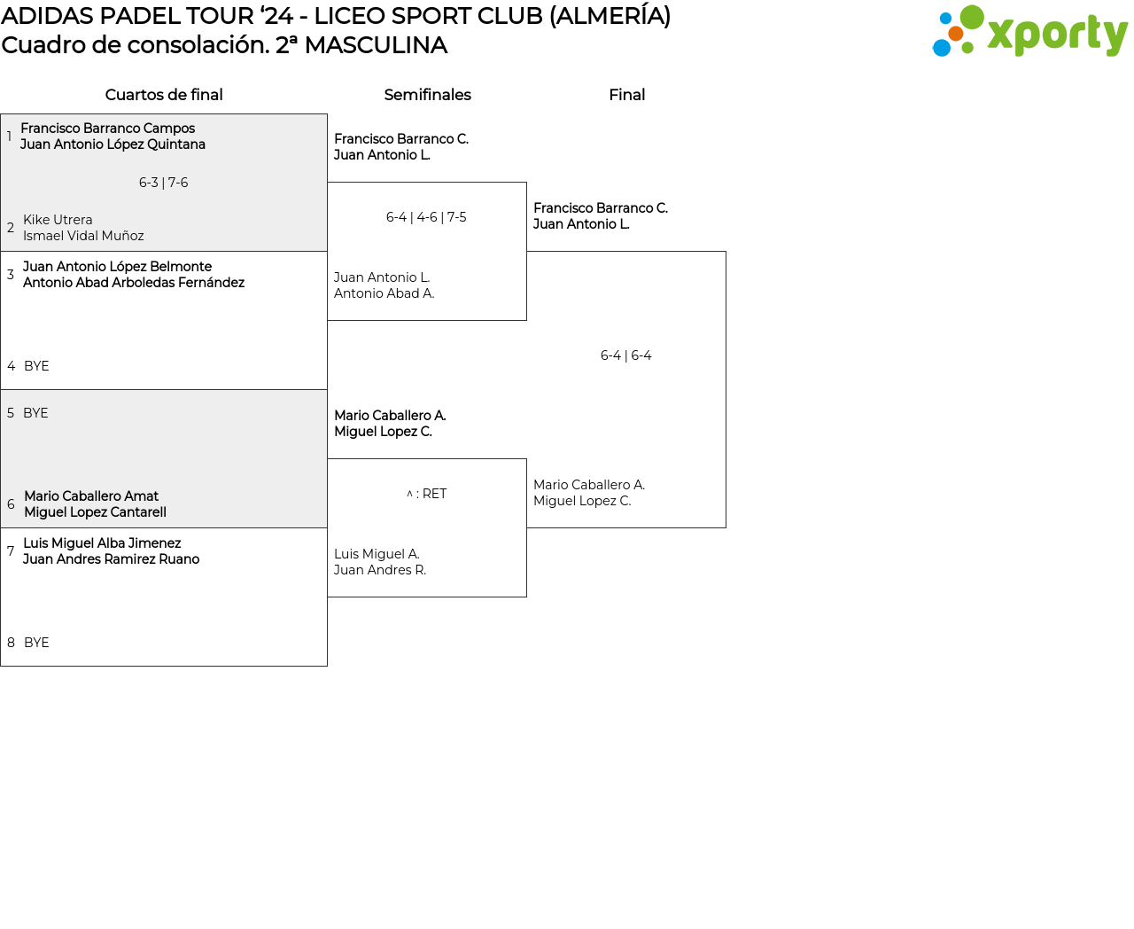 Cuadro de consolación 2ª MASCULINA