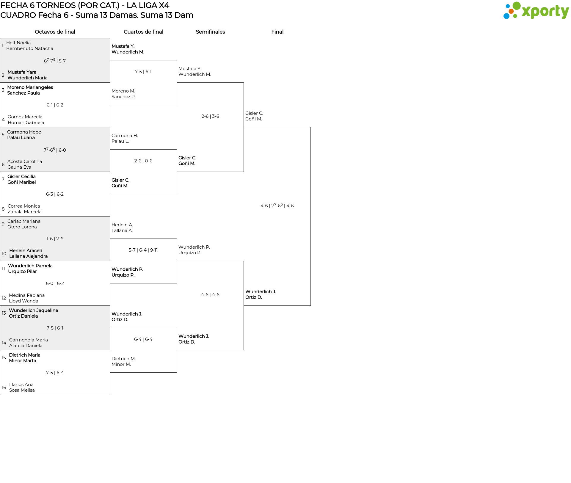 FECHA 6 TORNEOS (POR CAT.) - LA LIGA X4