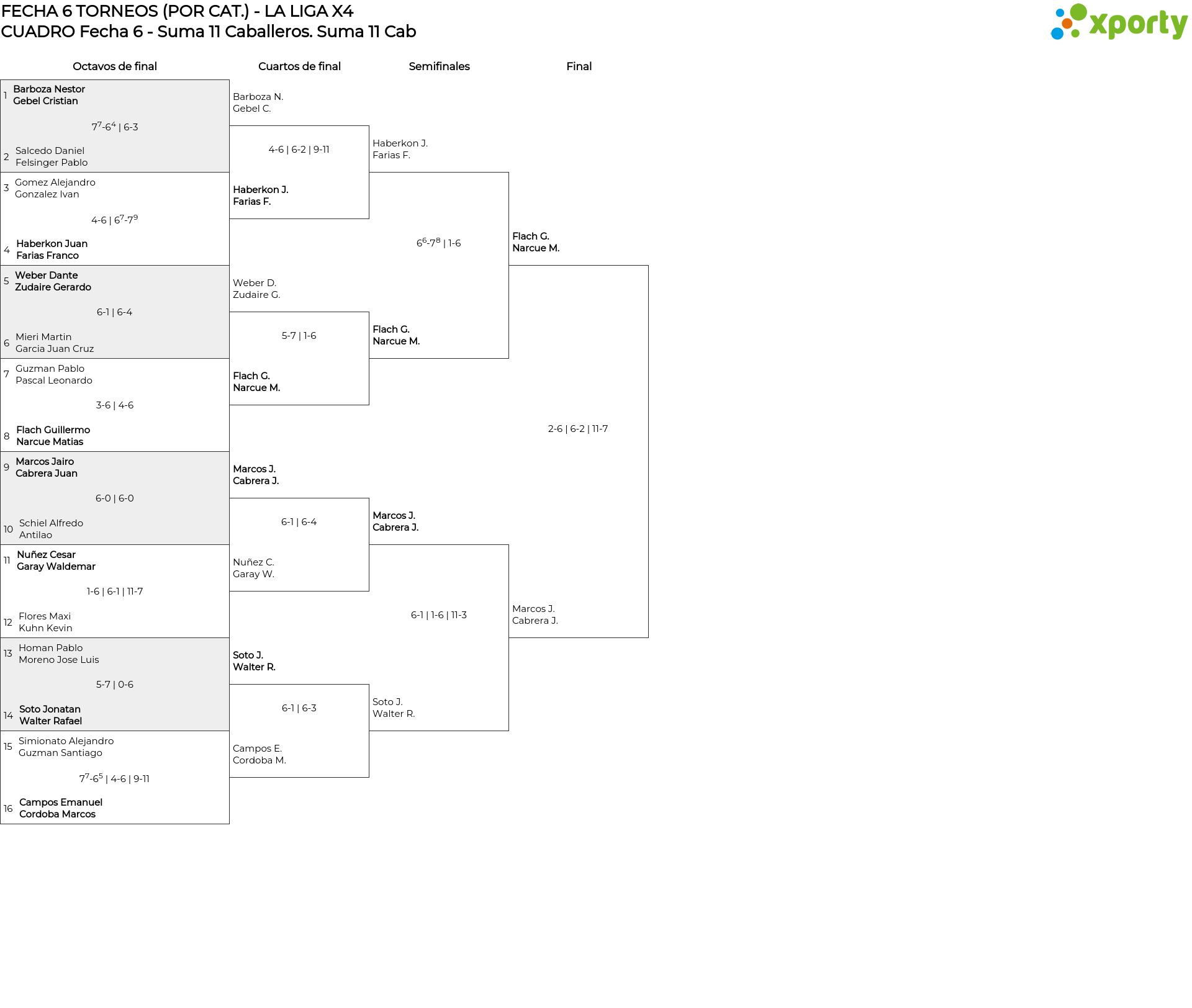CUADRO Fecha 6 - Suma 11 Caballeros