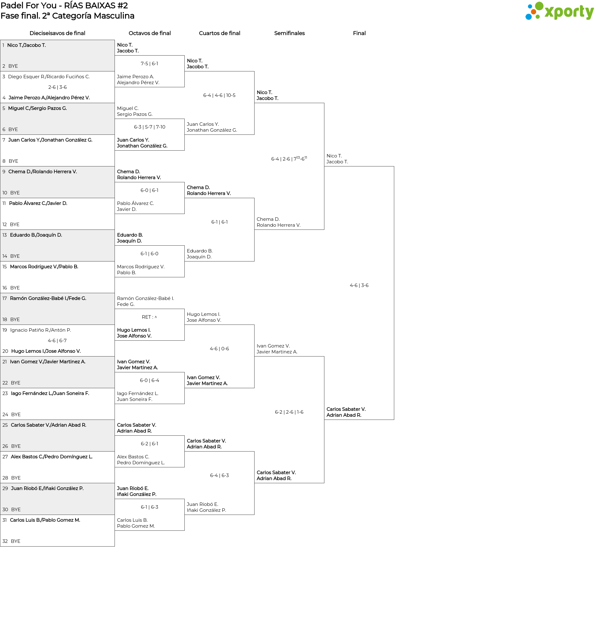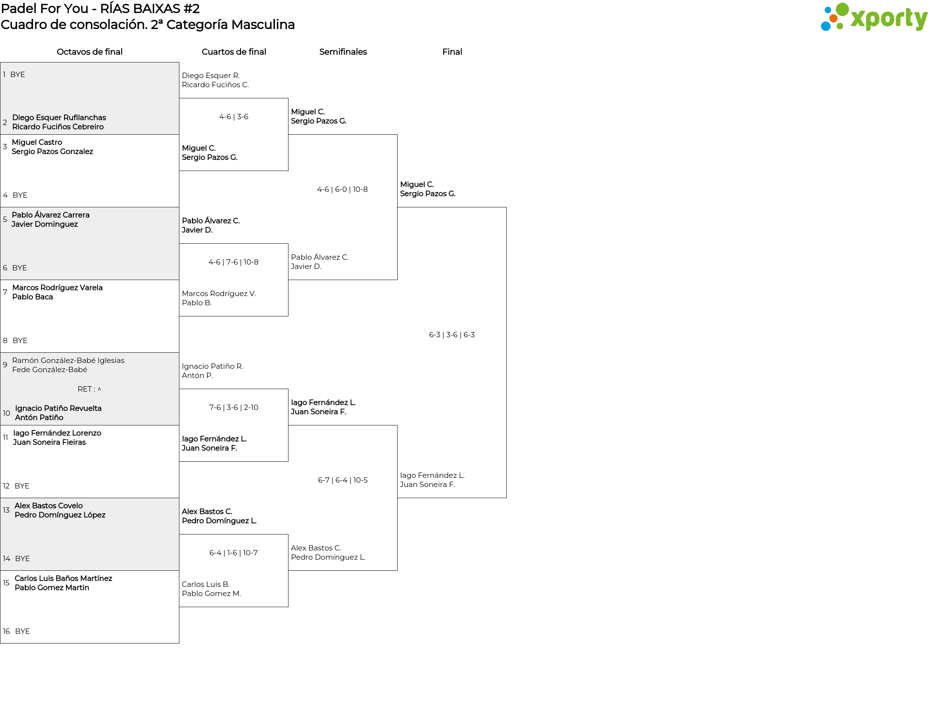 Cuadro de consolación 2ª Categoría Masculina