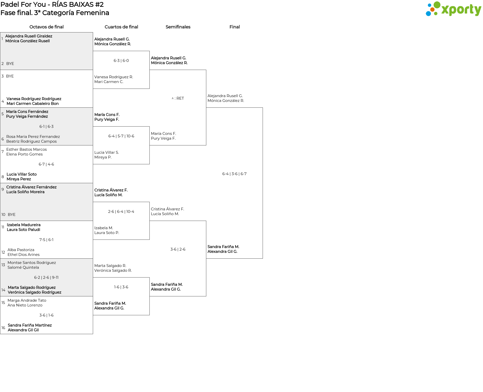 Cuadro de consolación 3ª Categoría Femenina