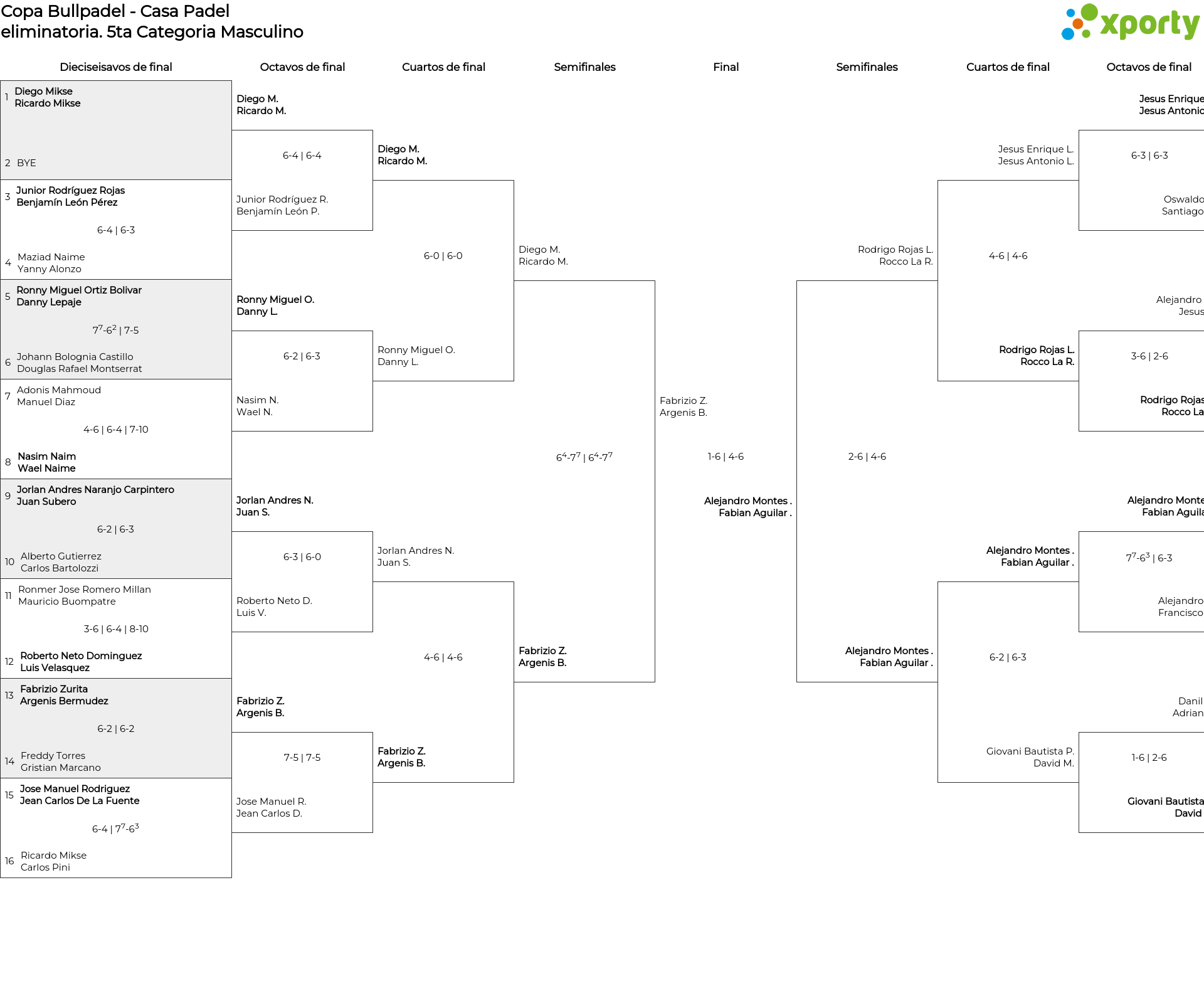 Cuadro principal 5ta Categoria Masculino