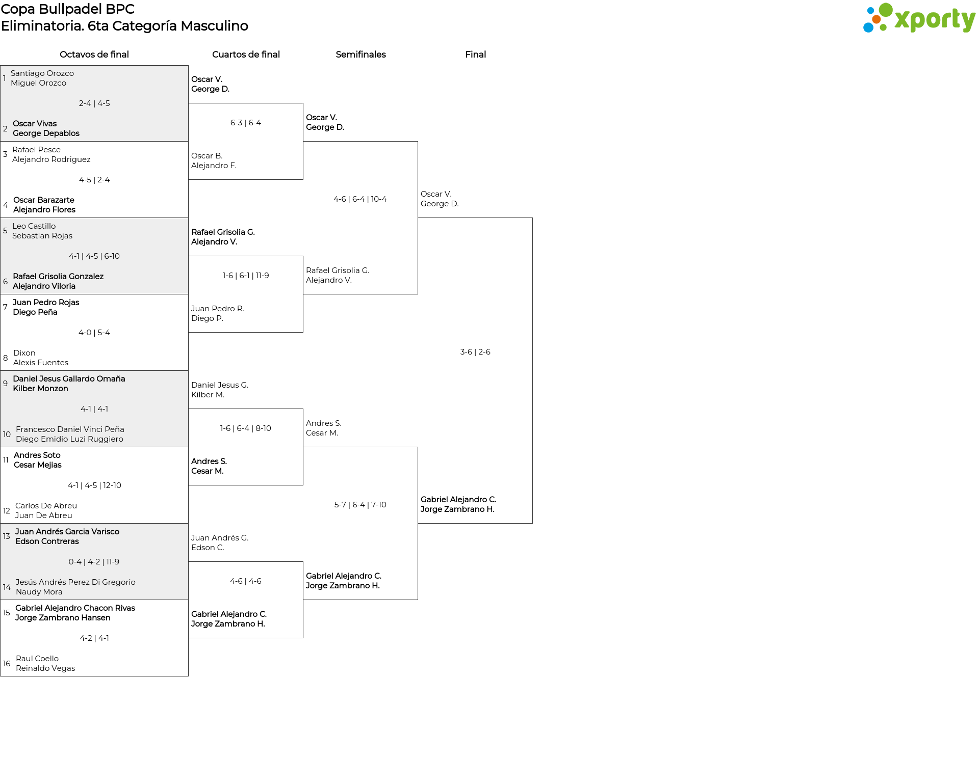 Cuadro principal 6ta Categoría Masculino