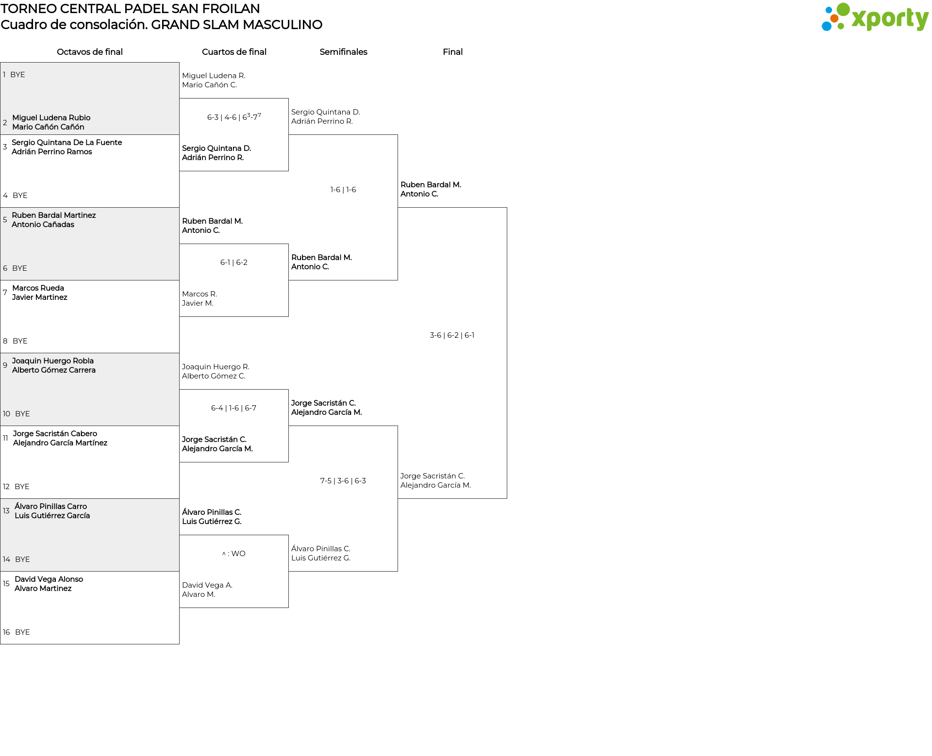 Cuadro de consolación GRAND SLAM MASCULINO