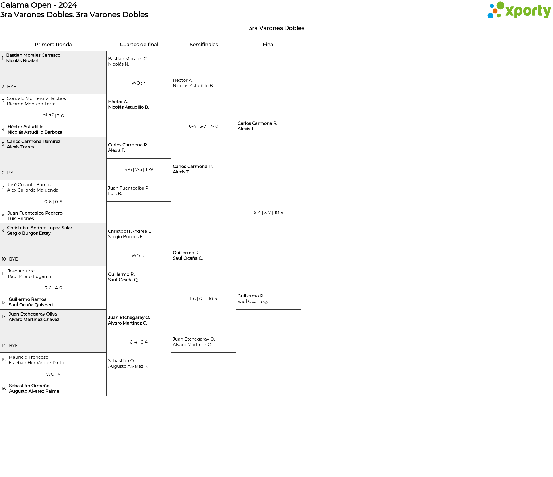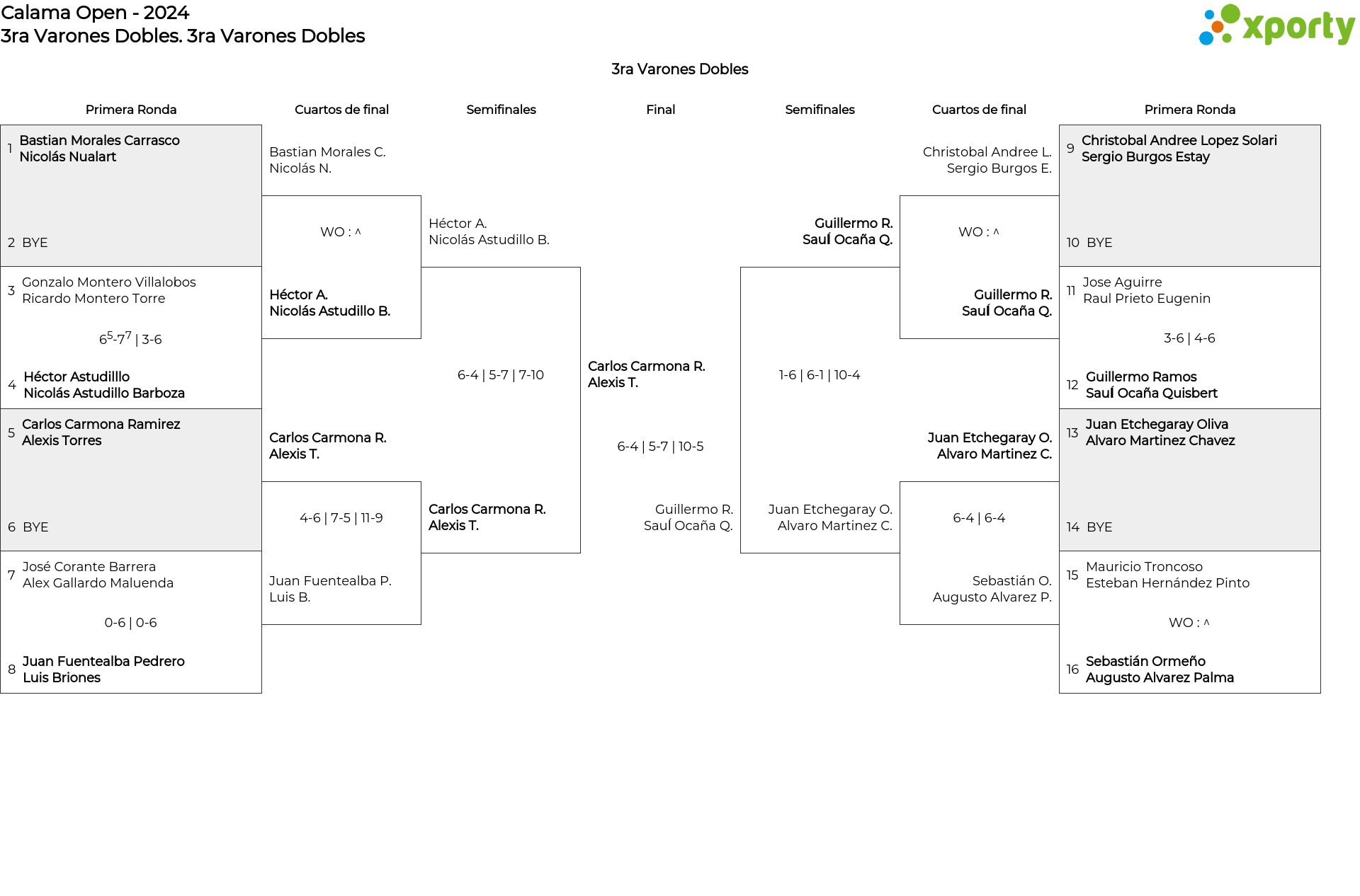 Cuadro principal 3ra Varones Dobles