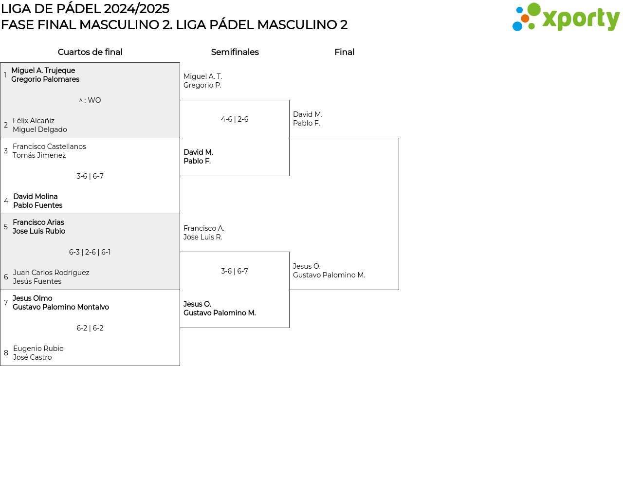 Cuadro principal LIGA PÁDEL MASCULINO 2