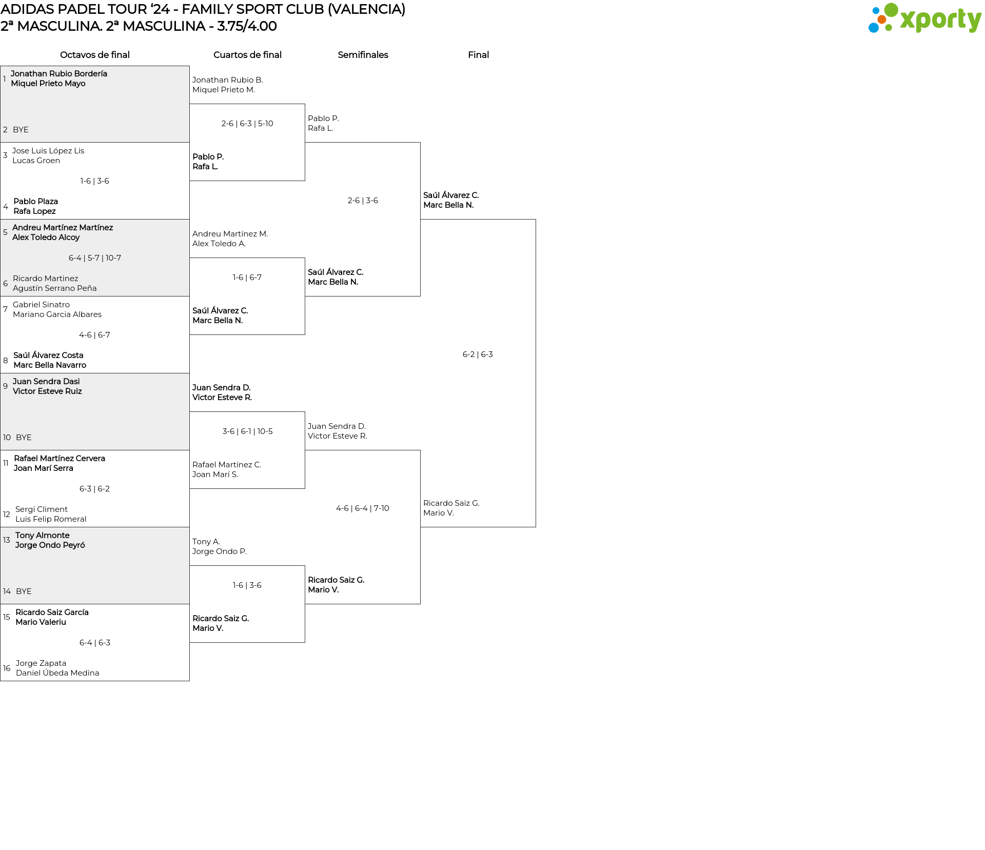 Cuadro principal 2ª MASCULINA - 3.75/4.00