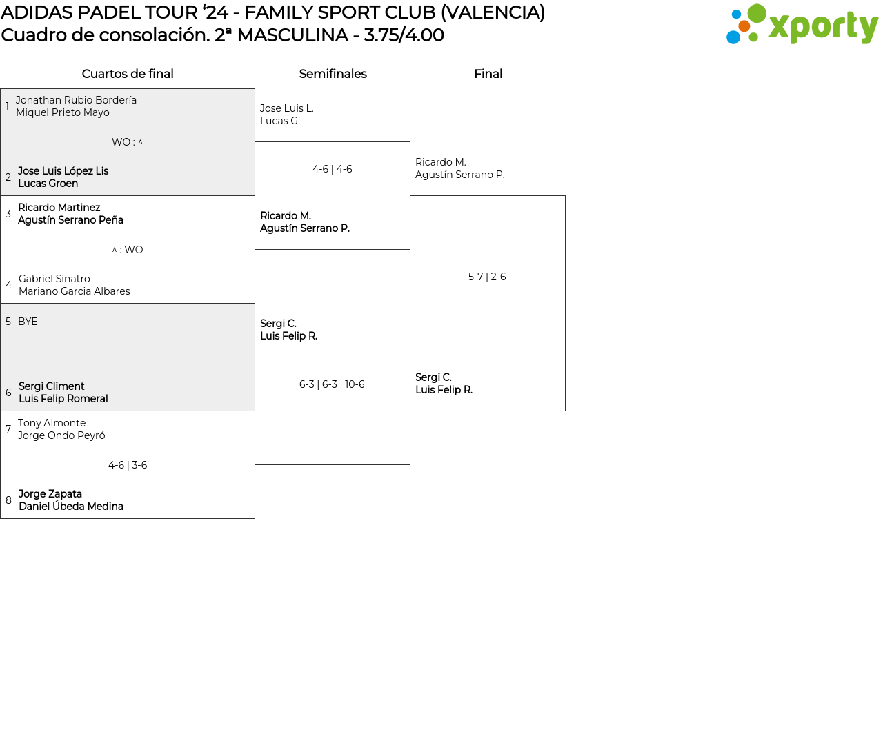 Cuadro de consolación 2ª MASCULINA - 3.75/4.00