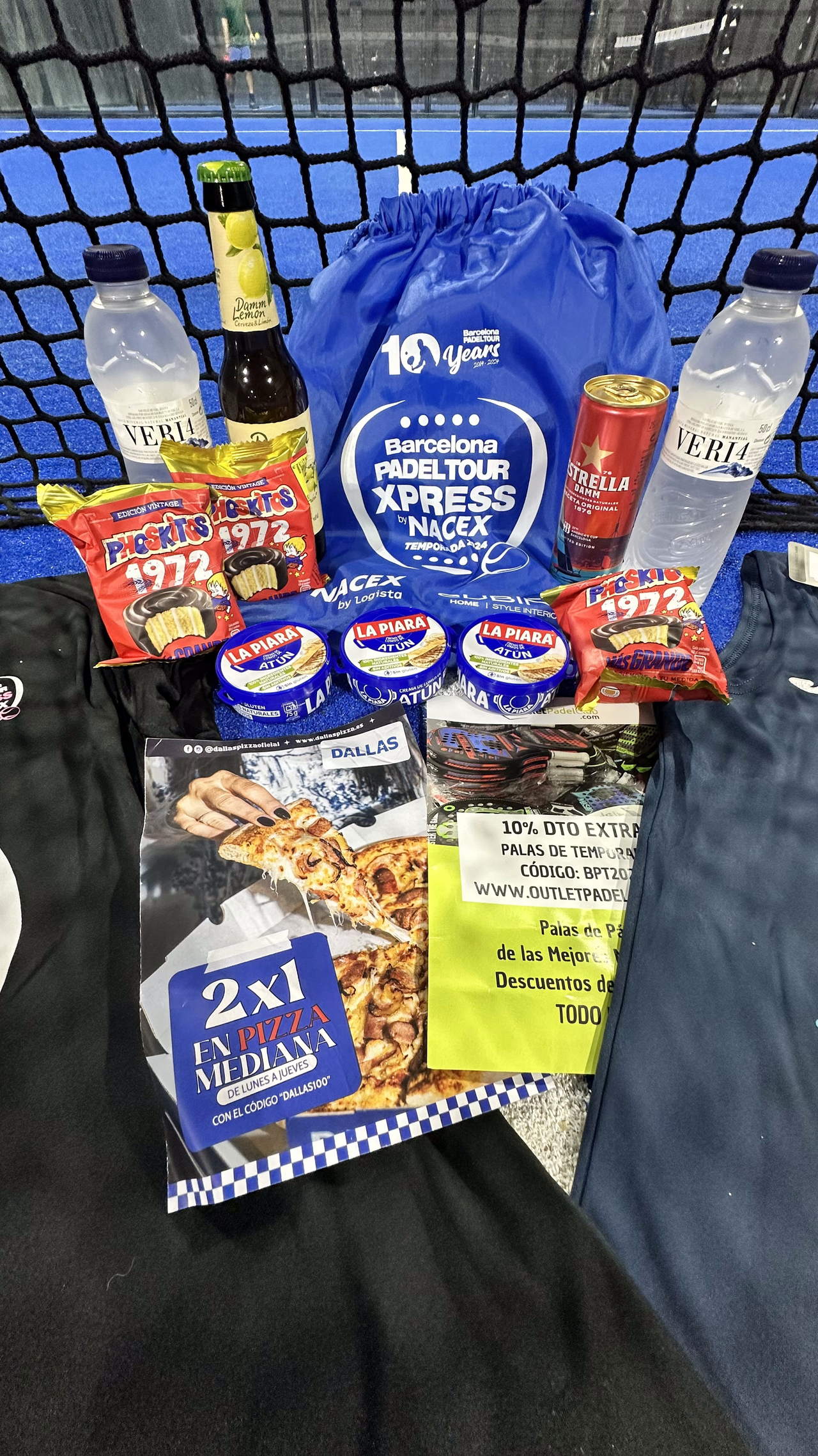 Estará compuesto por la Camiseta Oficial 10º Aniversario Barcelona Padel Tour valorada en 39,90€, productos de nuestros colaboradores, participación en el sorteo y agua ilimitada.