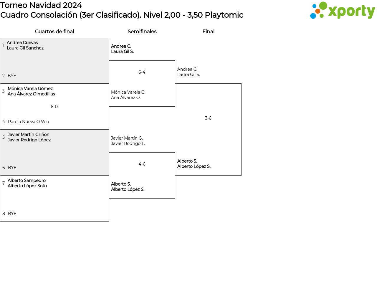 Fase de Grupos Cuadro Principal (1er y 2º Clasificado) Cuadro Consolación (3er Clasificado)Nivel 3,50 - 5,00+ Playtomic
