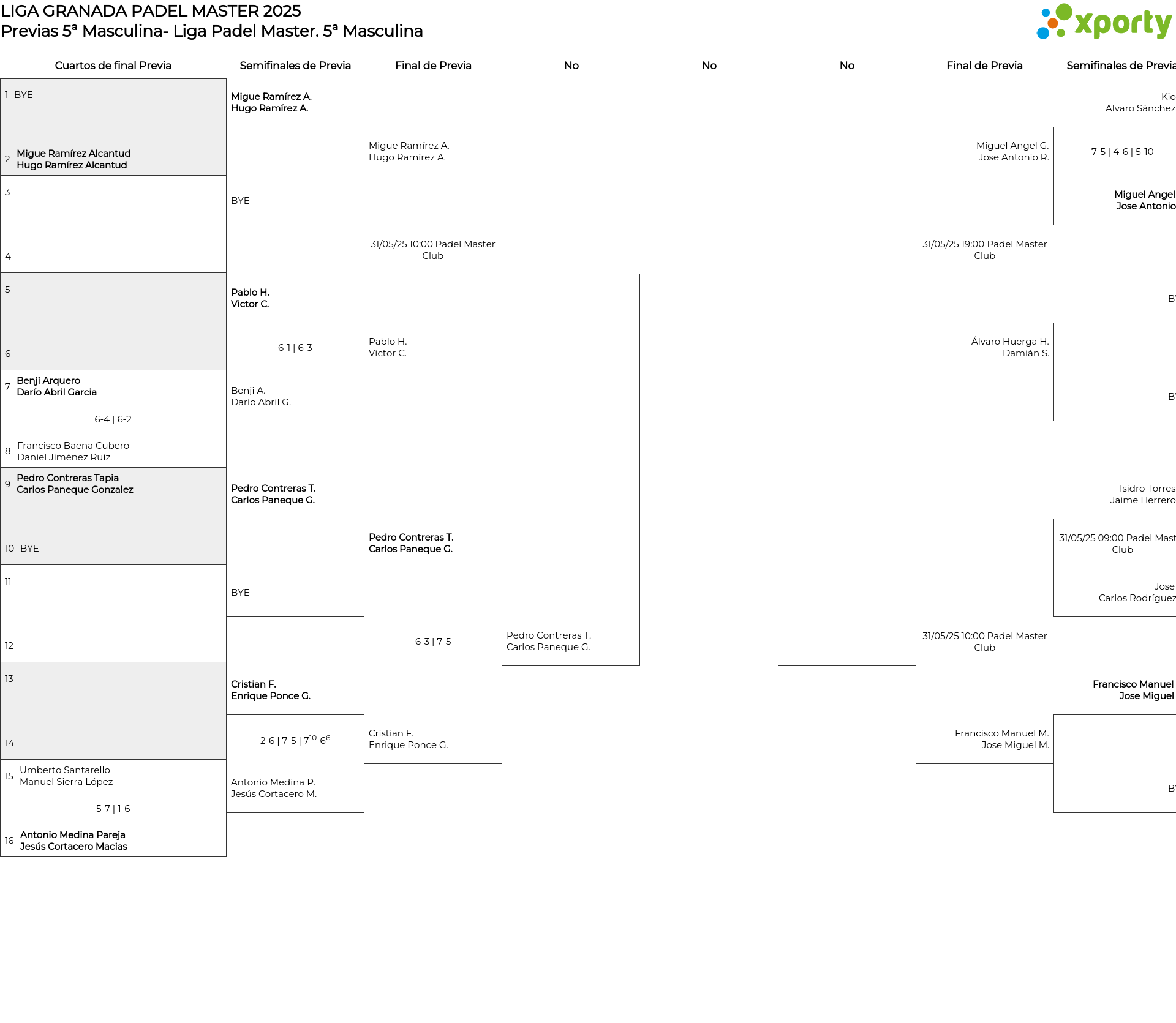 Liga Regular 5ª Masc Previas 5ª Masculina- Liga Padel Master 5ª Masculina - Master Provincial Granada5ªB Masculina