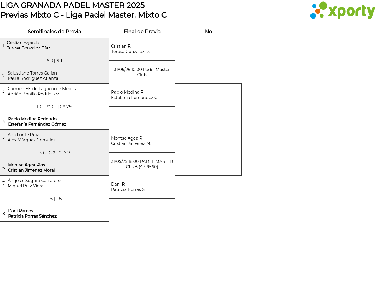 Liga Regular Mixto C Previas Mixto C - Liga Padel Master Mixto C - Master Provincial Granada