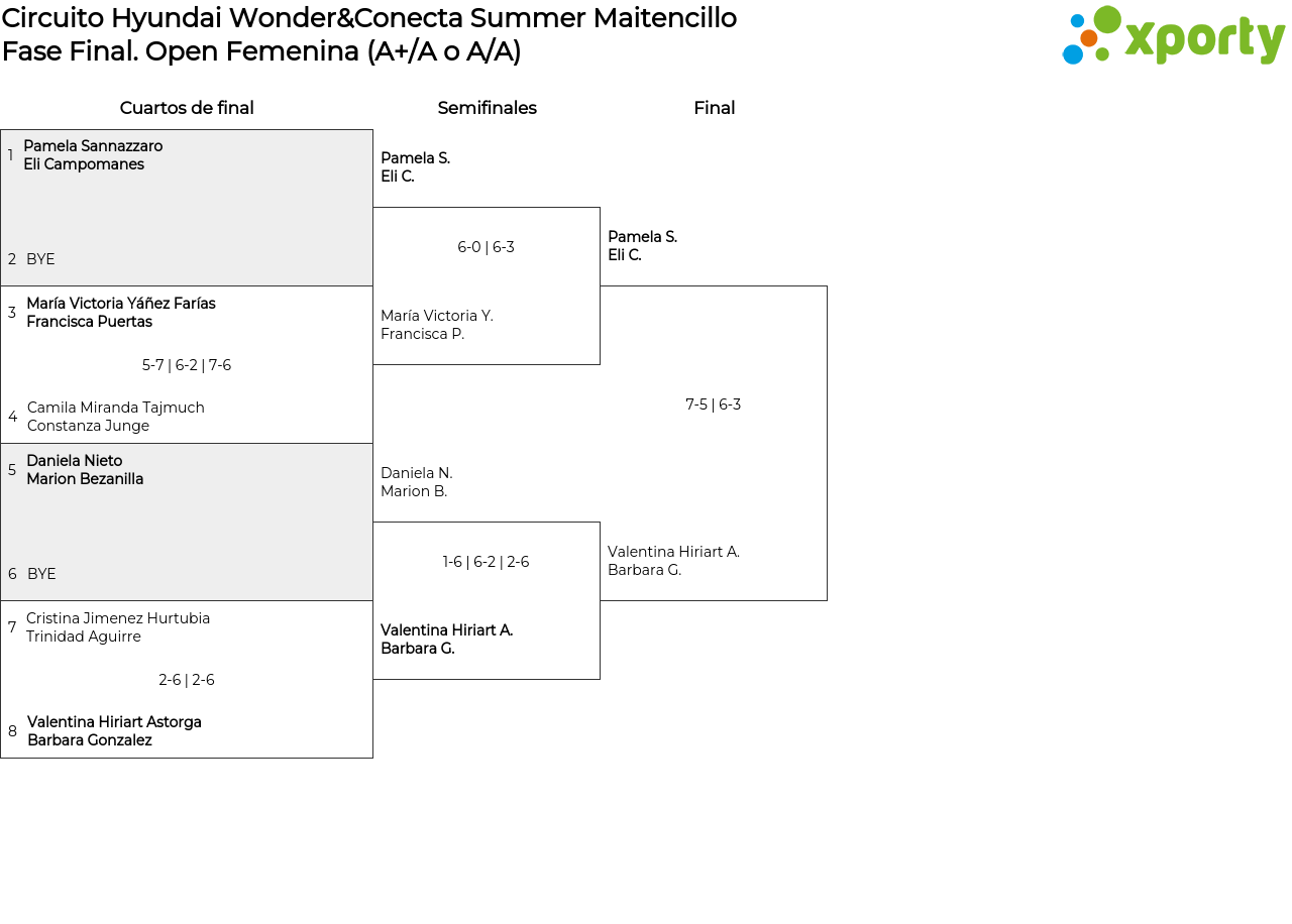 Cuadro principal Open Femenina (A+/A o A/A)