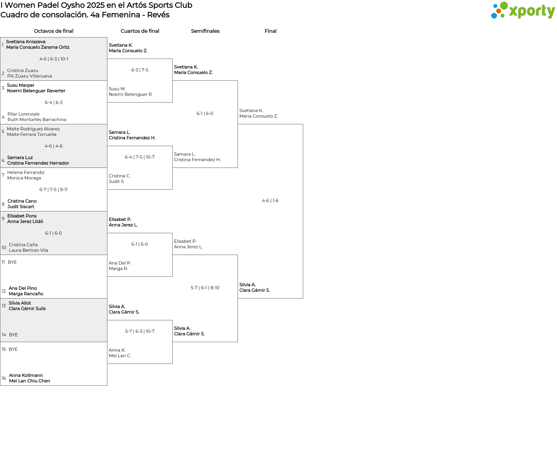 Cuadro de consolación 4a Femenina - Revés