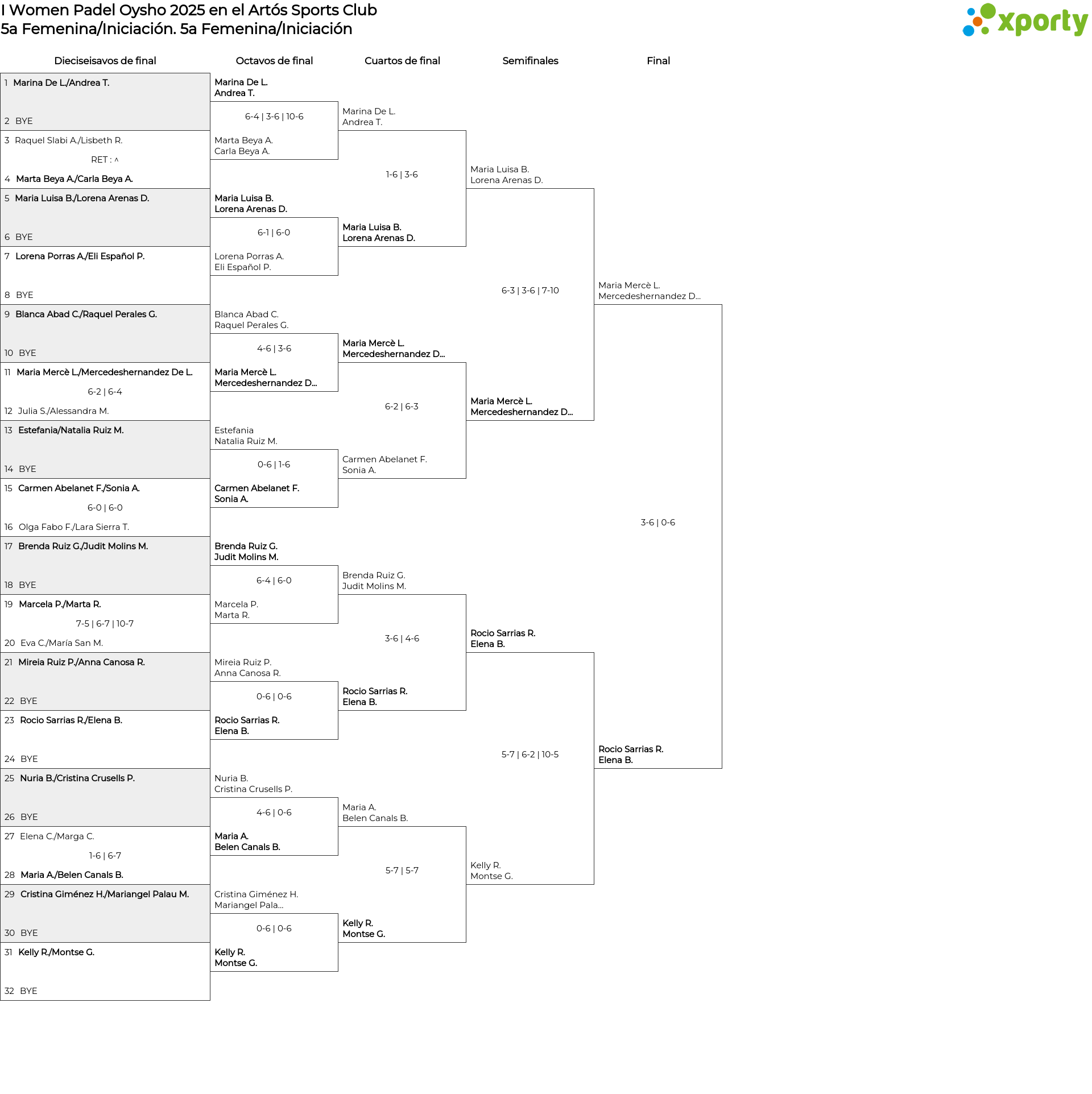 Cuadro principal 5a Femenina/Iniciación