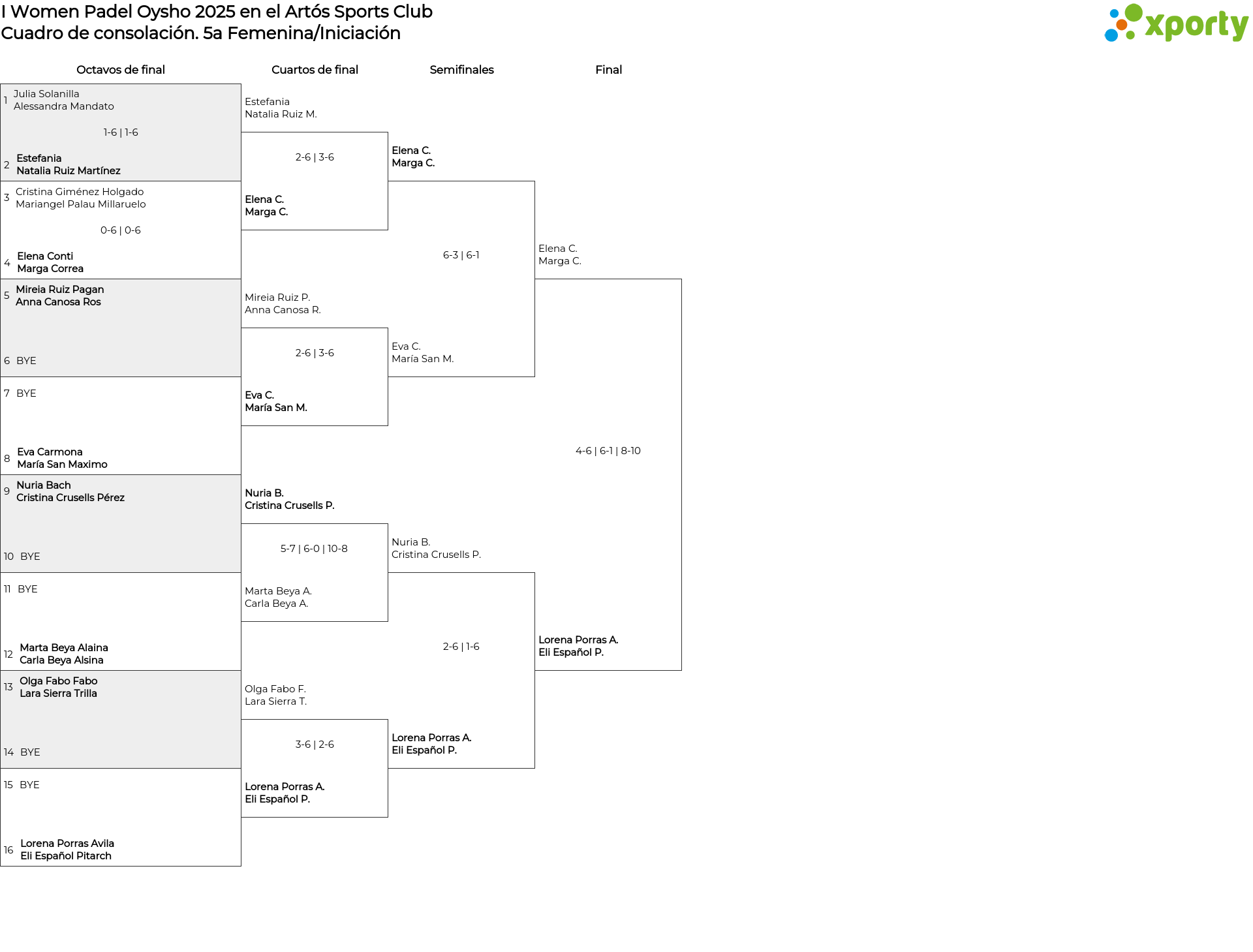 Cuadro de consolación 5a Femenina/Iniciación