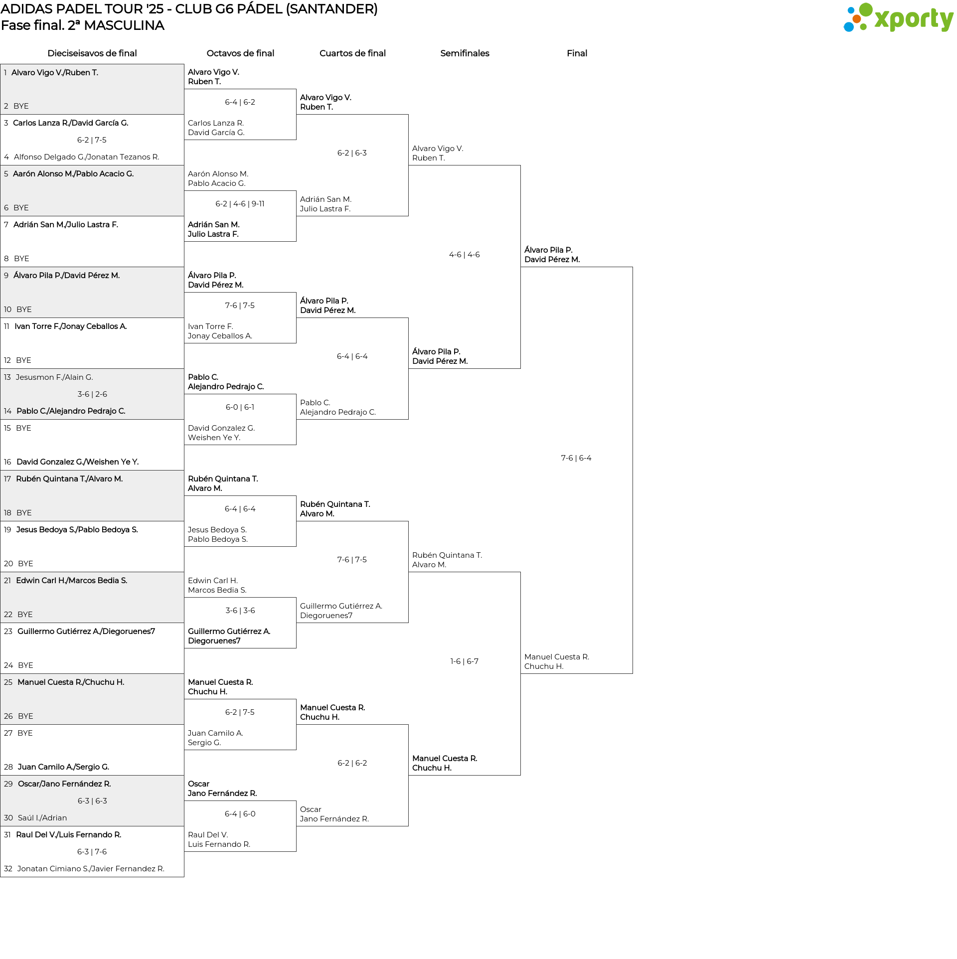 Cuadro de consolación 2ª MASCULINA