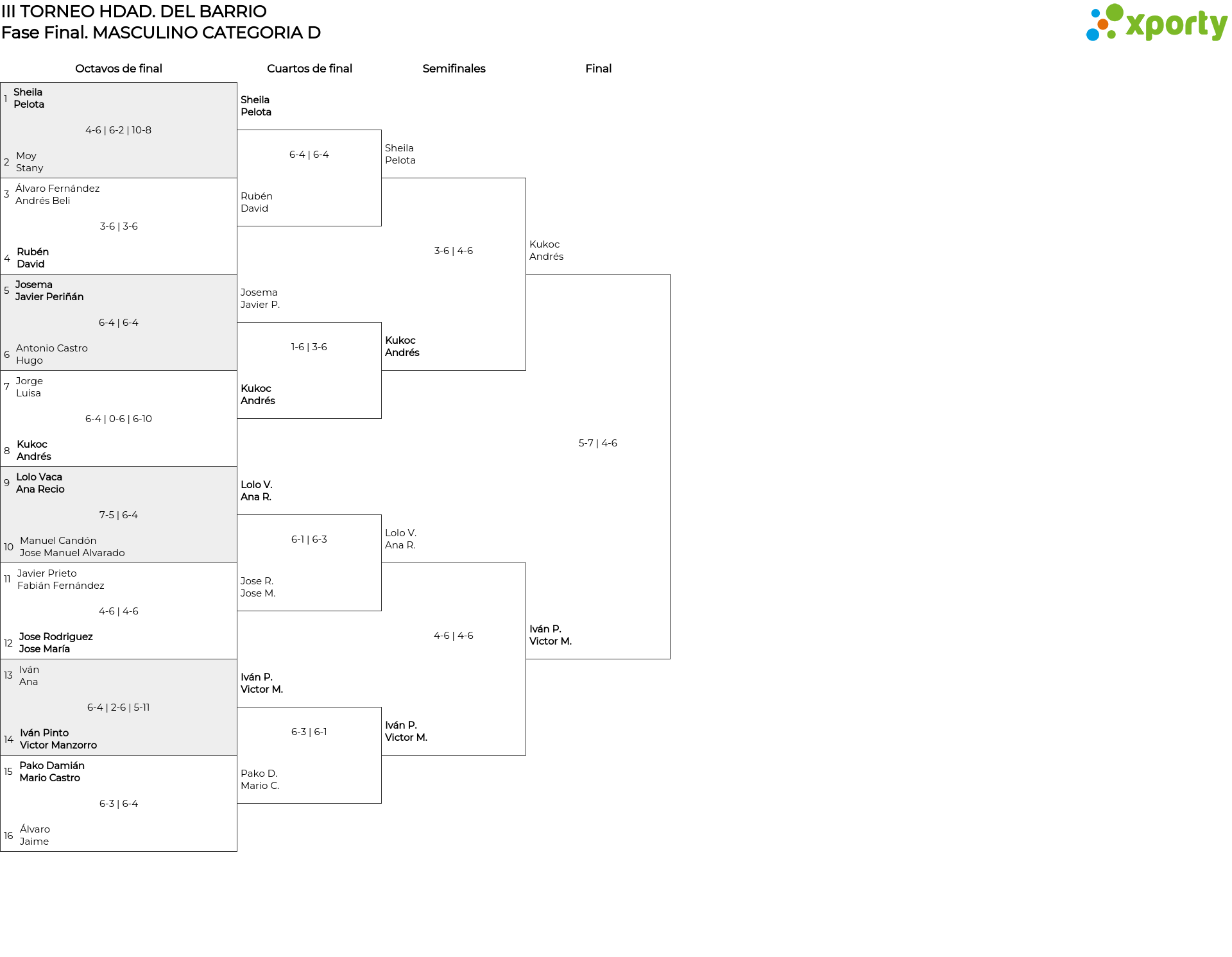 Cuadro principal MASCULINO CATEGORIA D