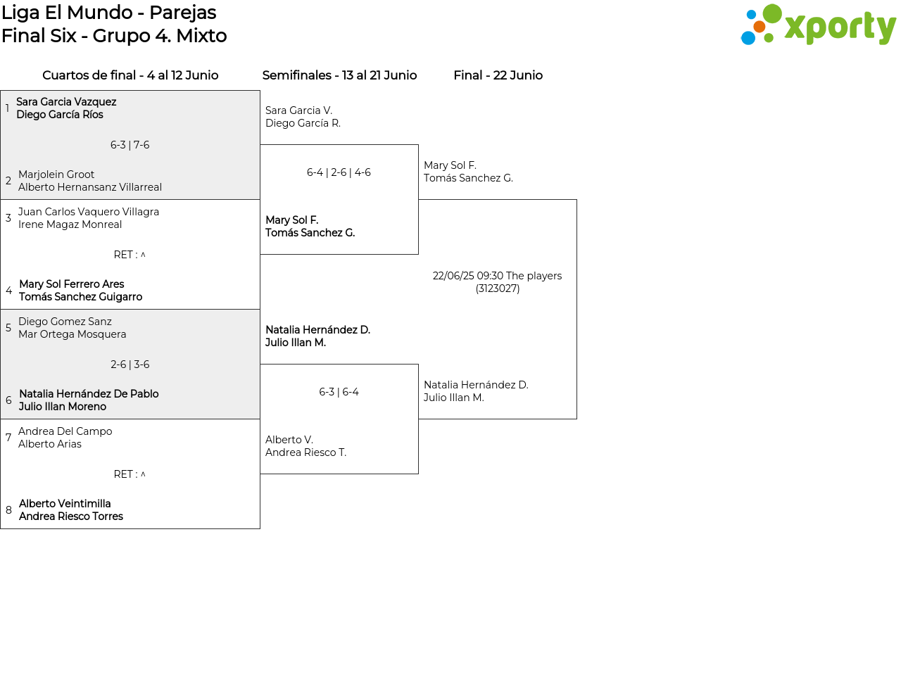 Cuartos de final - 4 al 12 Junio (1 partido)