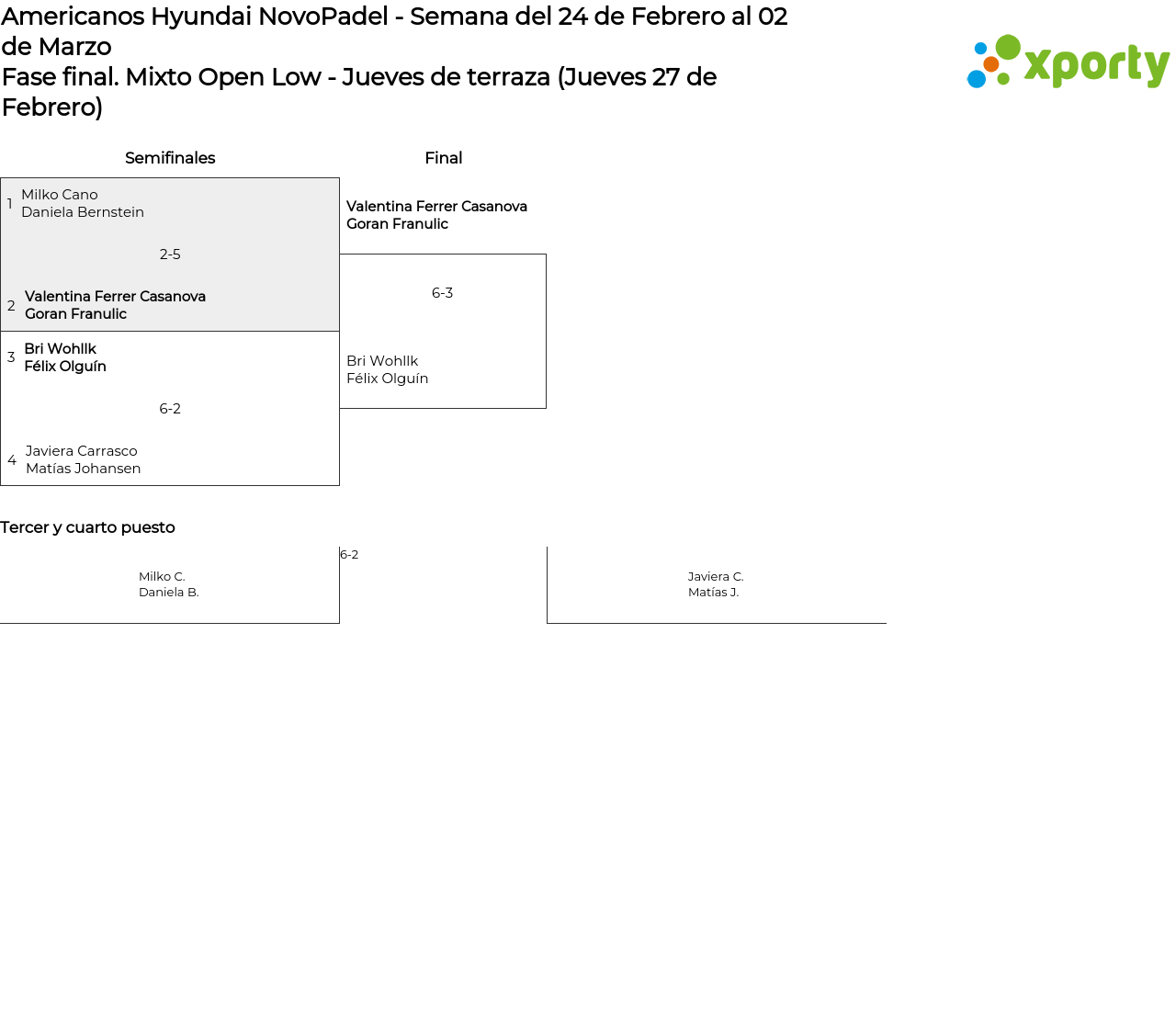 Fase grupos Fase finalMixto Open Low - Jueves de...