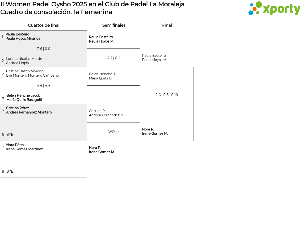 Cuadro de consolación 1a Femenina