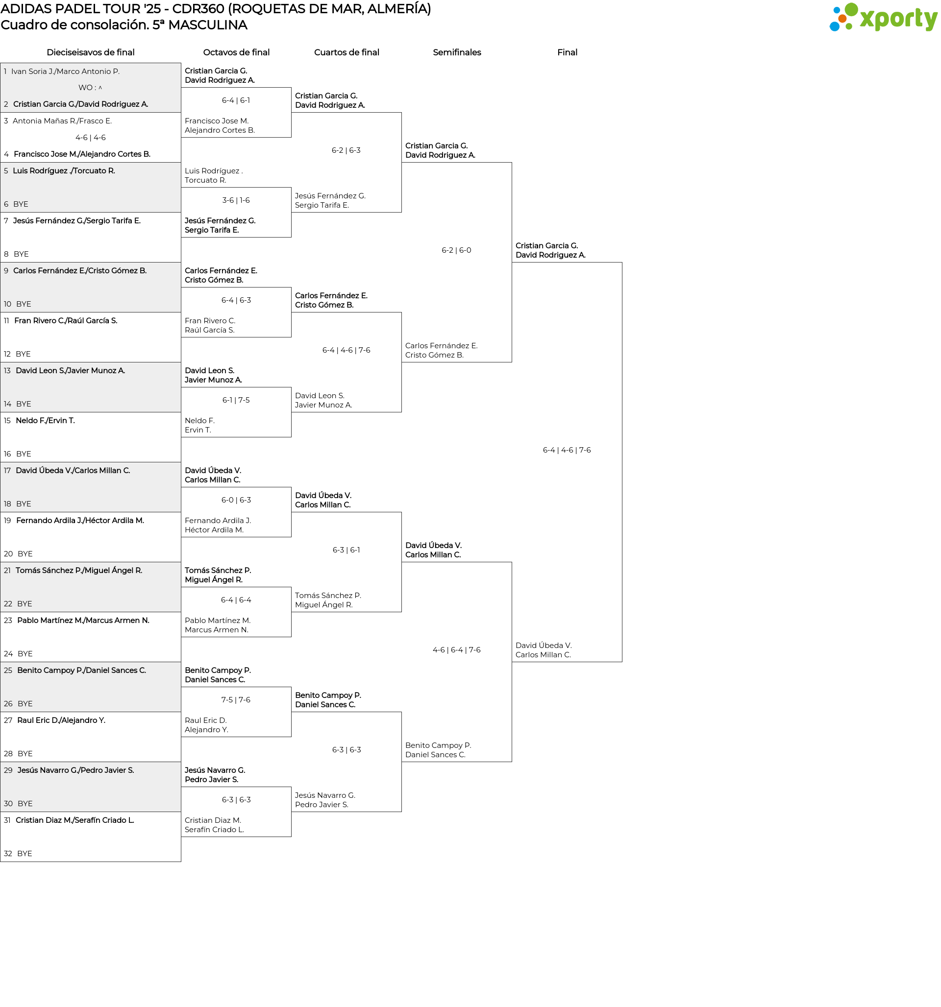 Cuadro de consolación 5ª MASCULINA