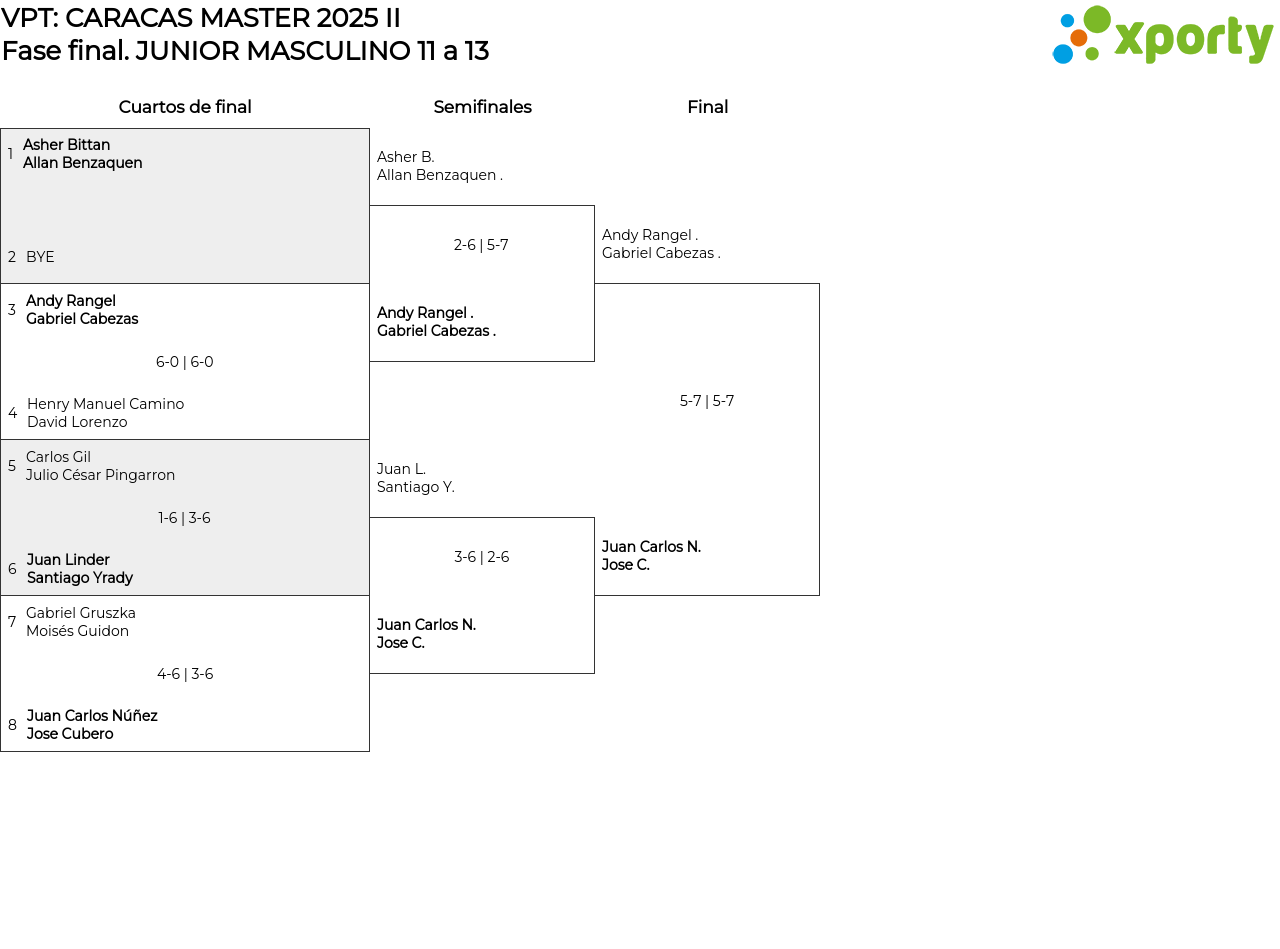 Cuadro principal JUNIOR MASCULINO 11 a 13